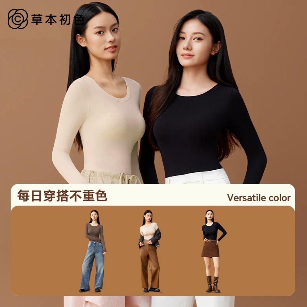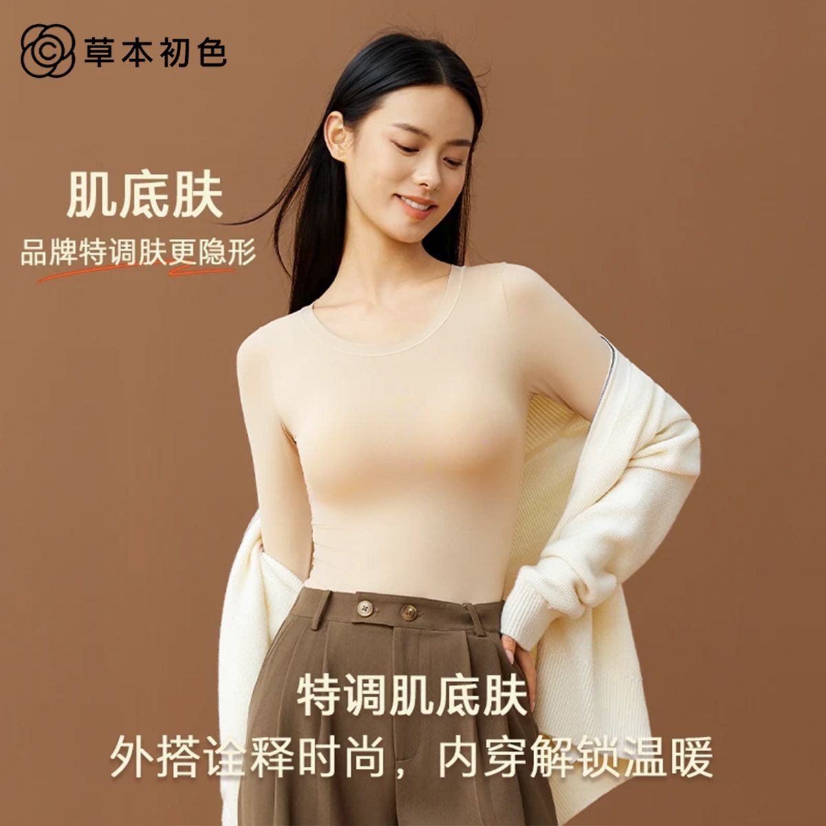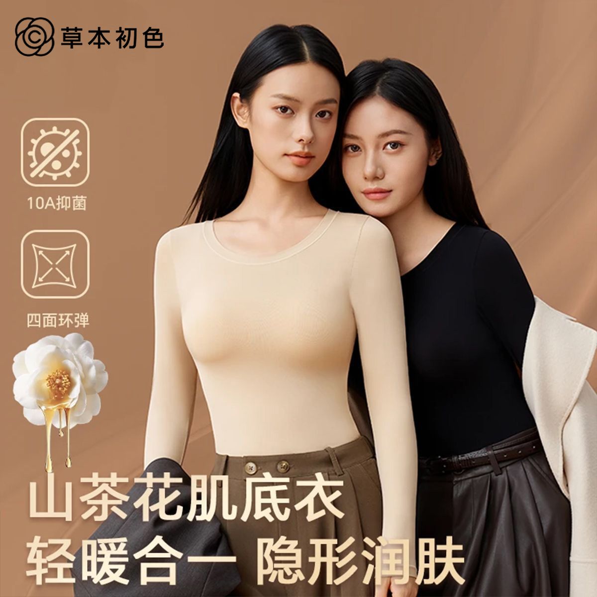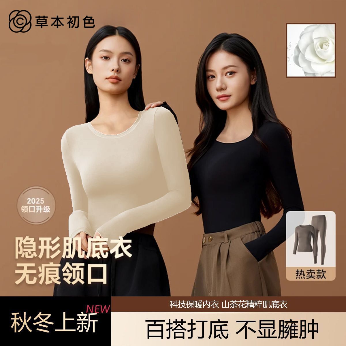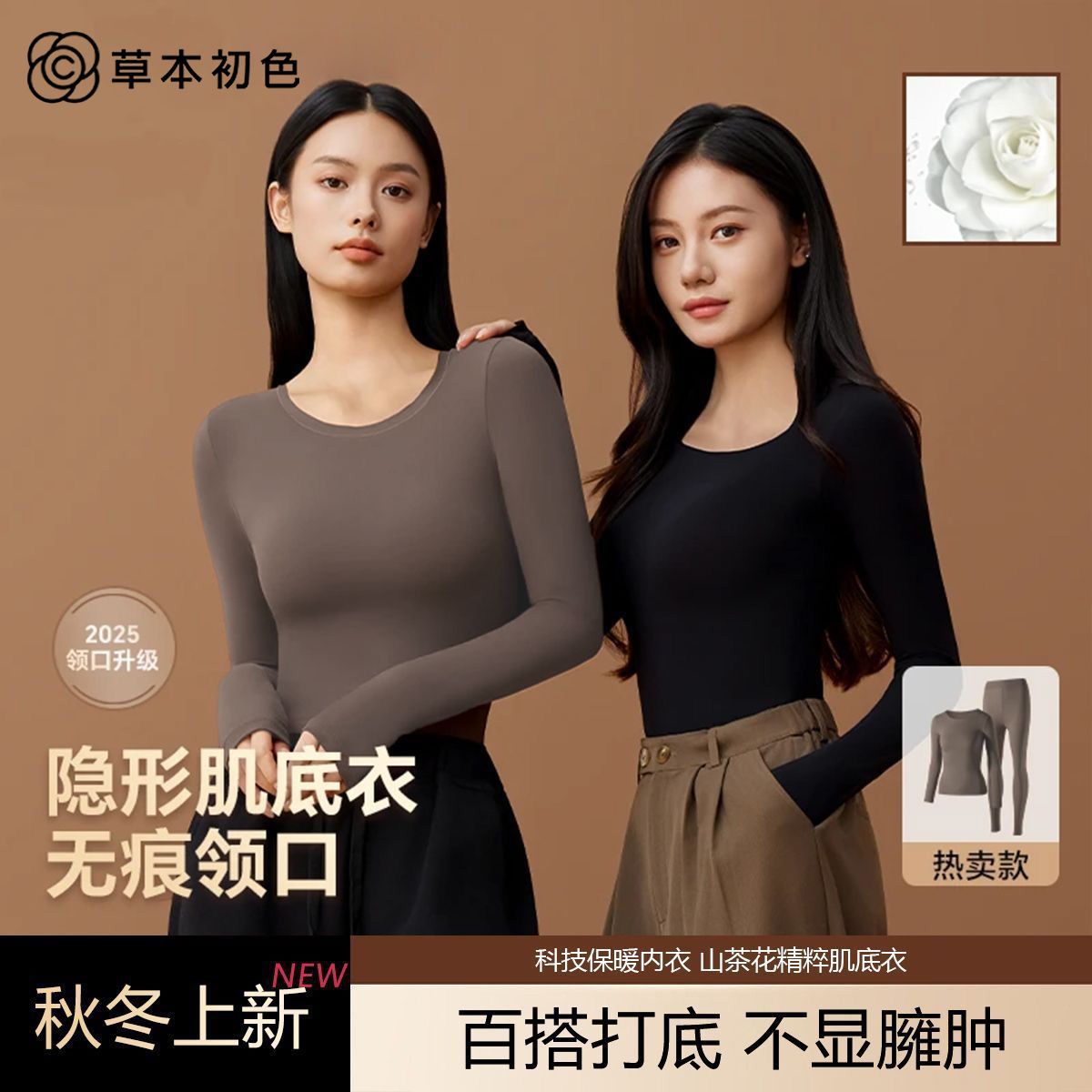 【草本初色】保暖内搭山茶花肌底衣女无痕美肤内衣打底秋衣裤套装