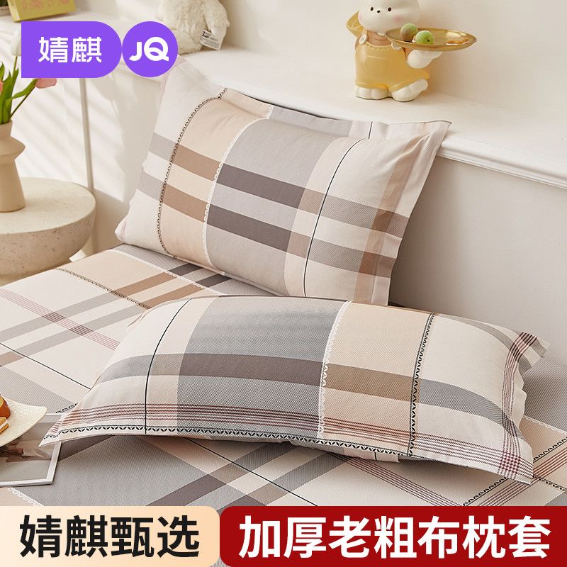 【婧麒老粗布枕套两只装】家用卧室成人枕头套48x74cm一对装通用