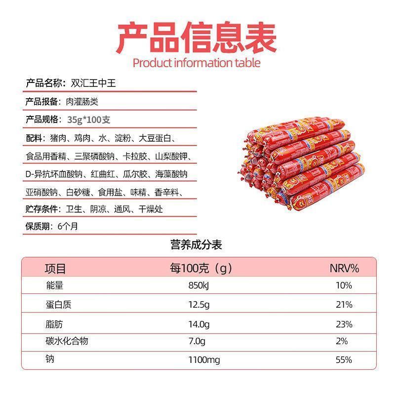 新日期双汇王中王35g优级火腿肠批发烧烤整箱即食香肠休闲零食