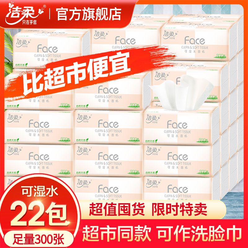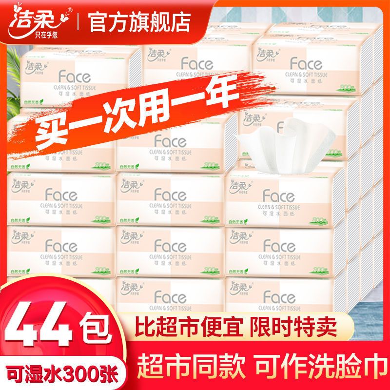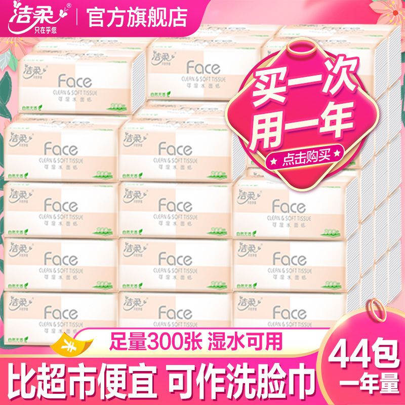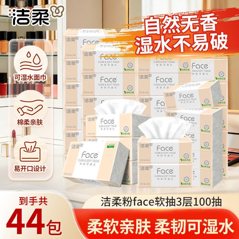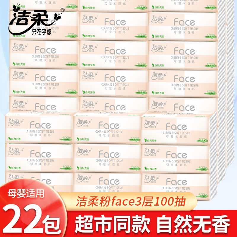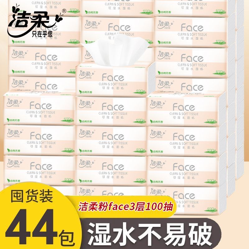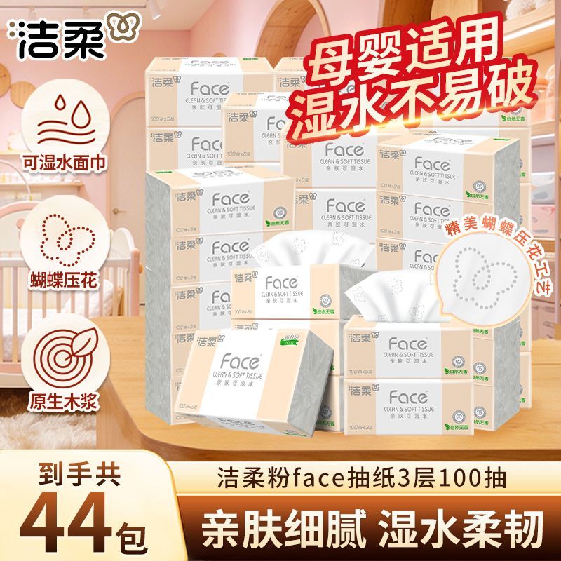 洁柔Face粉抽纸可湿水面巾纸无香家用纸巾批发3层100抽餐巾纸S码