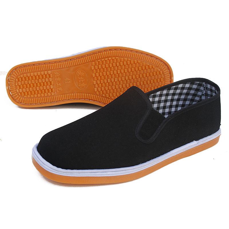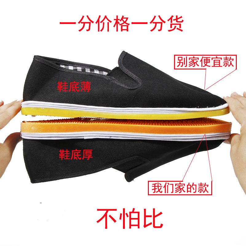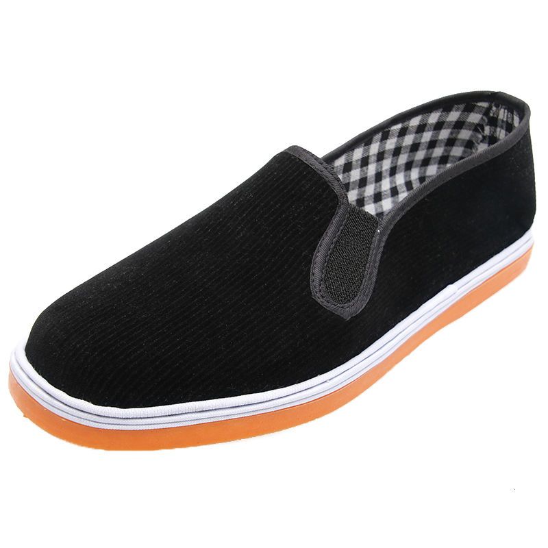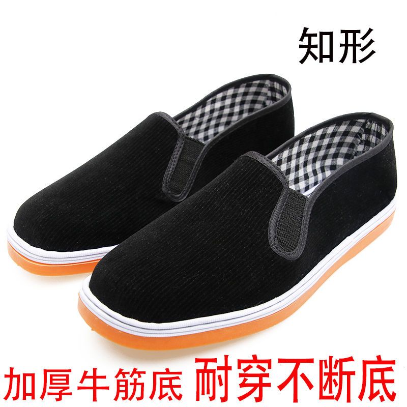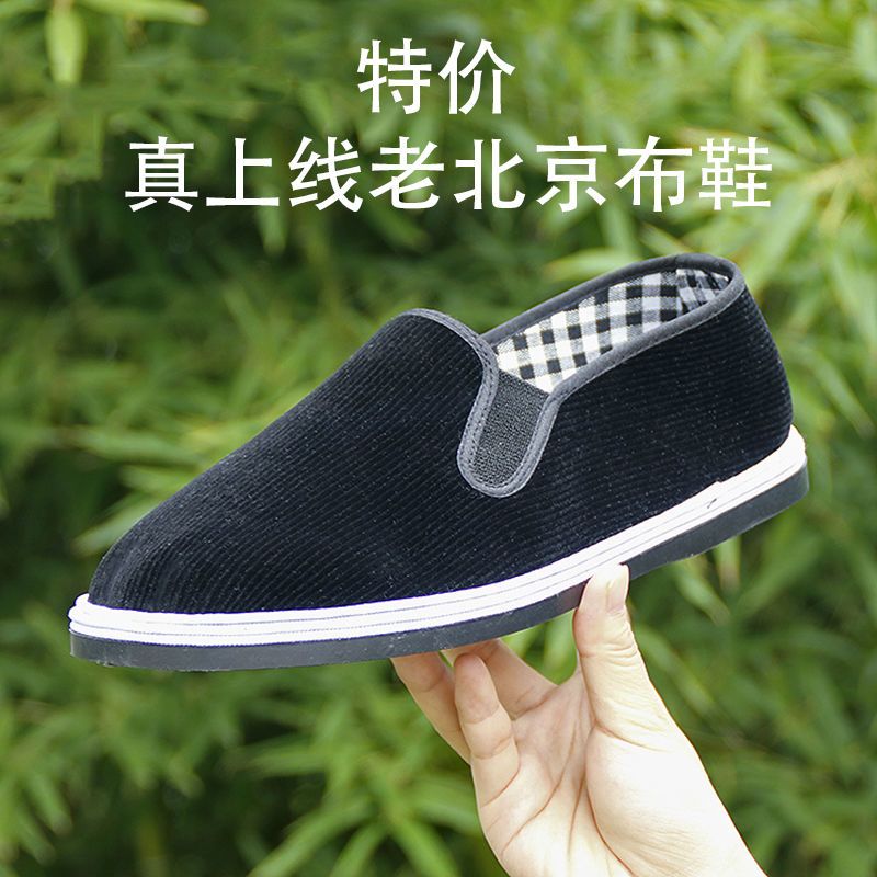 春季加厚牛筋底灯芯绒老北京布鞋男士条绒黑布鞋千层底爸爸鞋防滑
