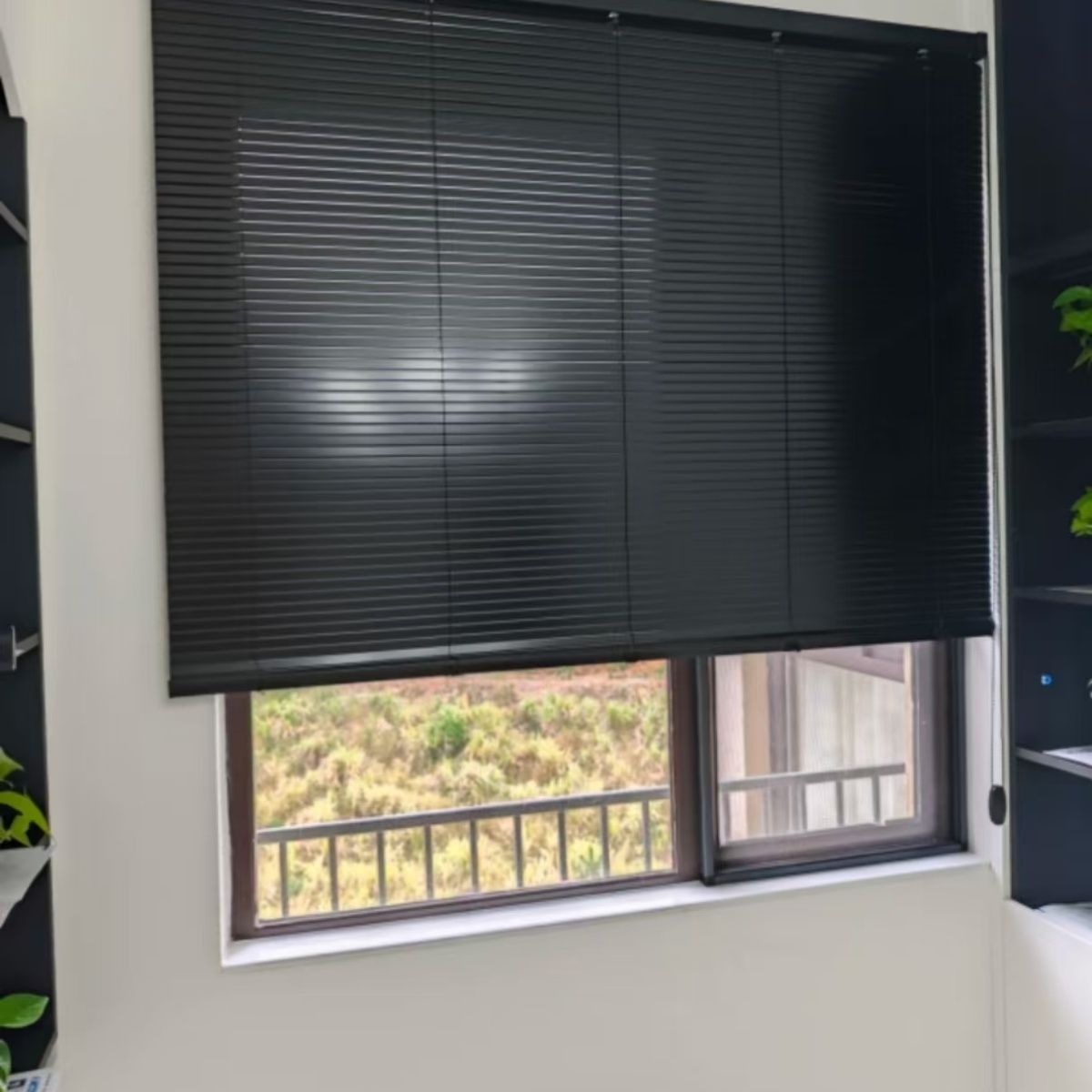 黑色ins风隐孔哑光铝百叶窗拉珠遮光卫生间窗厨房卷帘折叠窗帘