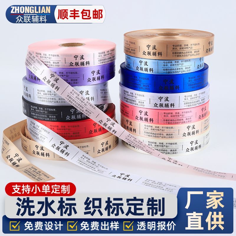 定制缎带洗唛服装柔软涤纶织边带字母水洗双面丝带服装水洗标商标