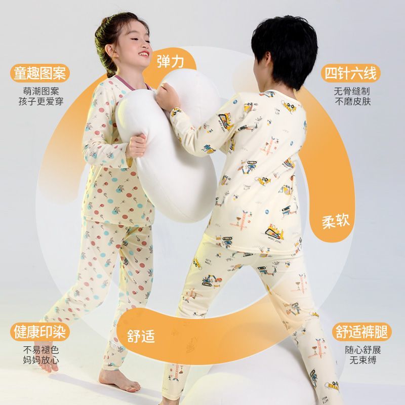 红豆儿童内衣套装男童女童新疆棉秋衣裤宝宝睡衣家居服