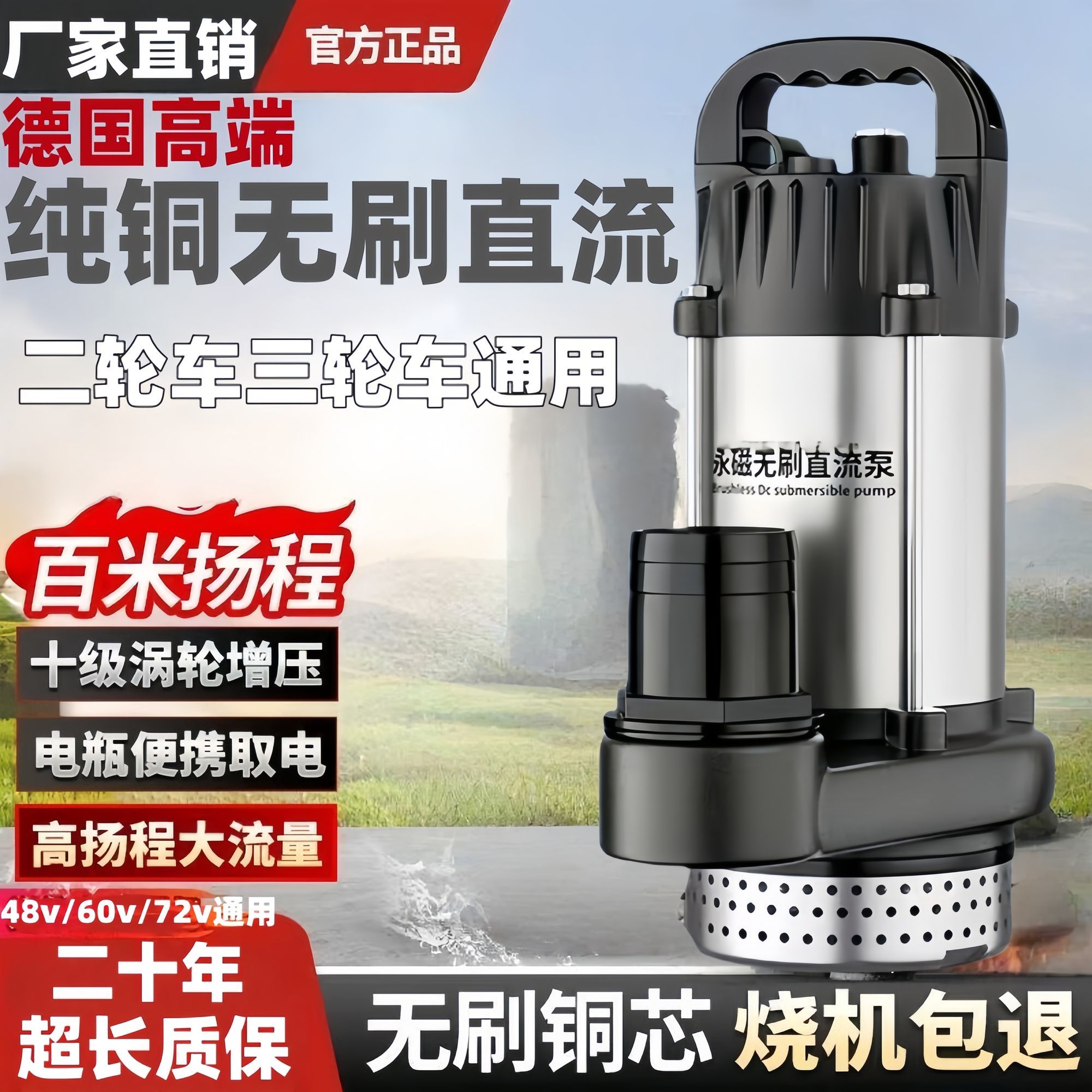 【顺丰包邮】无刷直流潜水泵48V/60V/72V伏电动电瓶车高扬程水泵