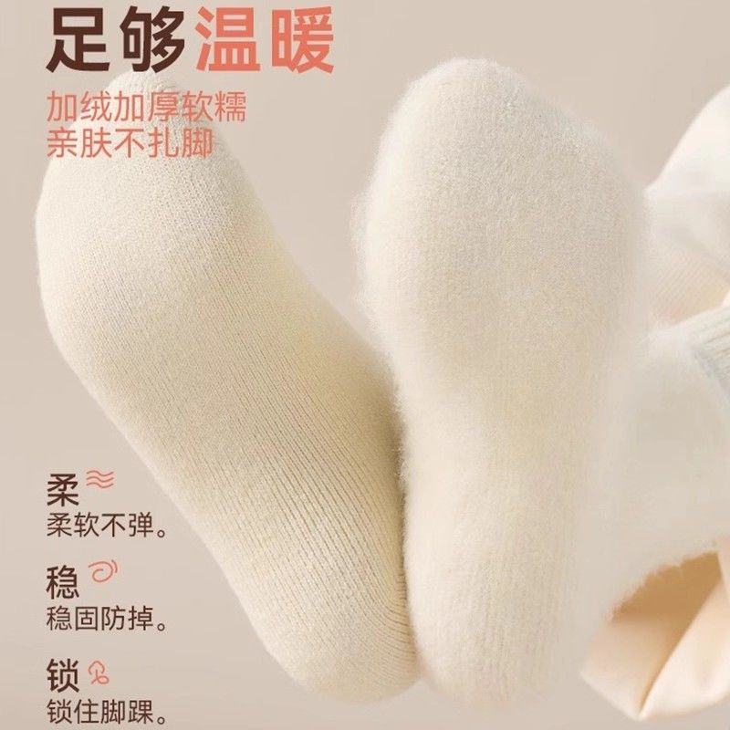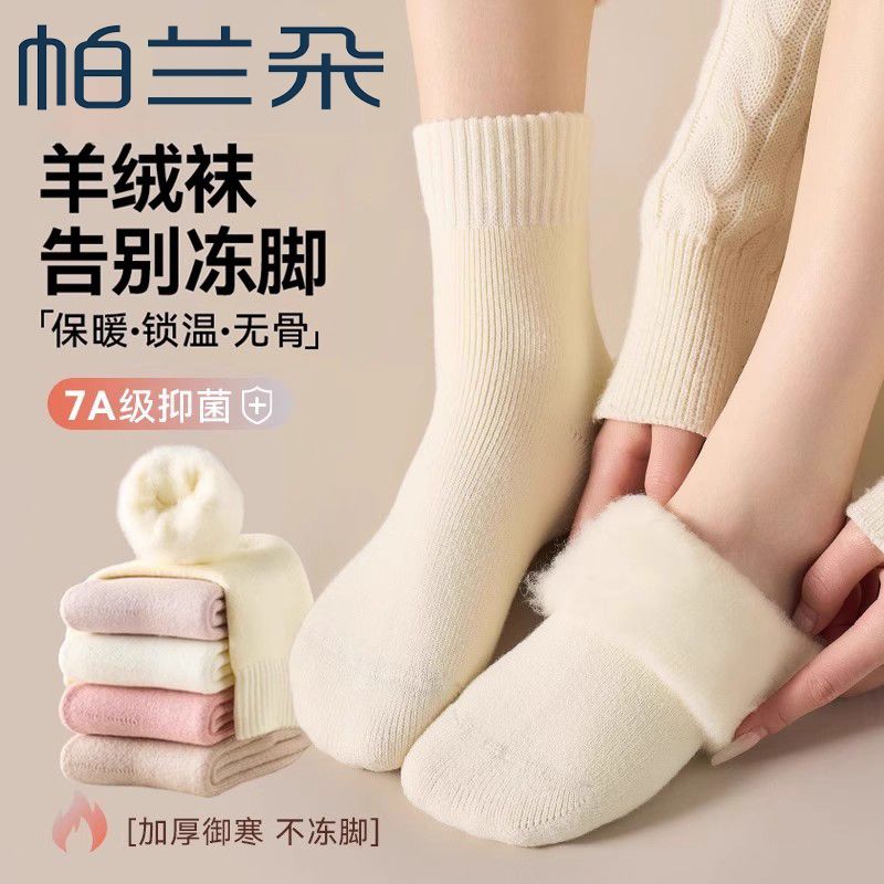 帕兰朵羊绒袜子女秋冬季毛绒加厚雪地袜冬款保暖羊毛堆堆月子袜产