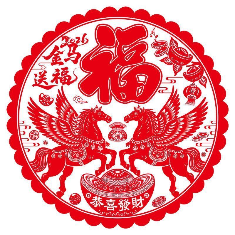 2026马年彩色双面静电窗花福字春节新年快乐布置场景用品马年窗花
