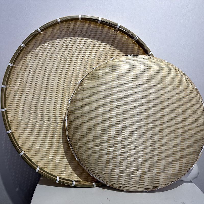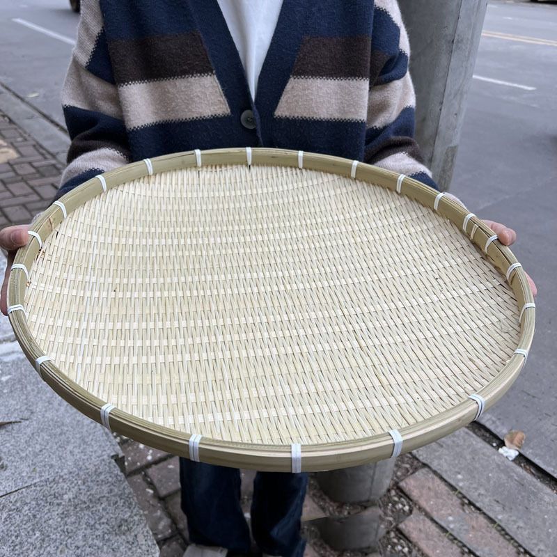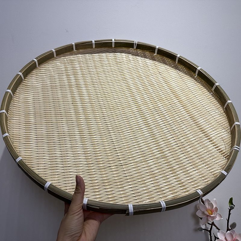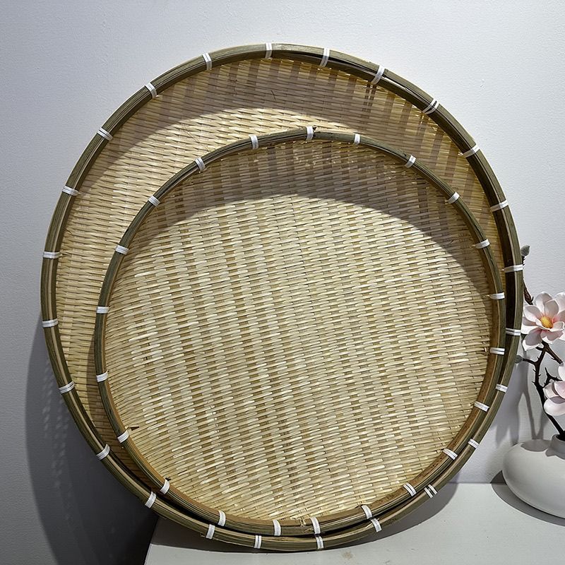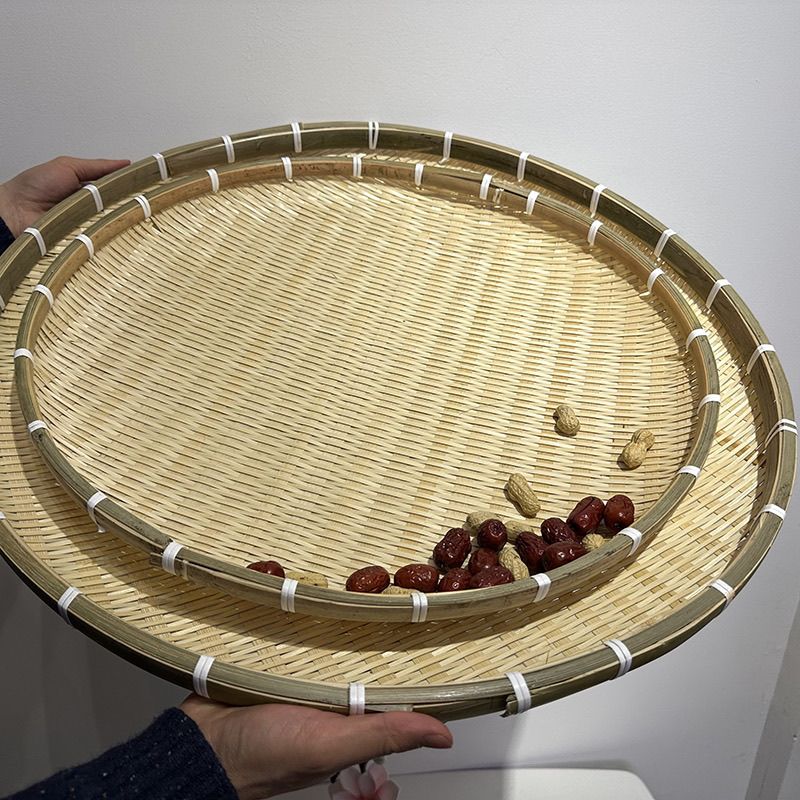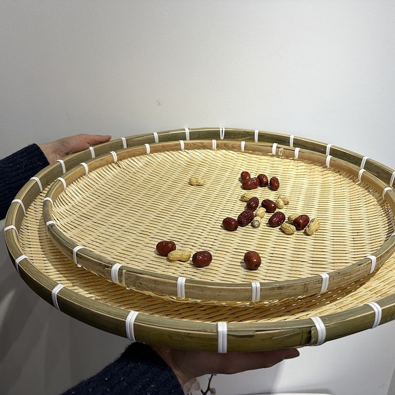 家用圆形手工竹编簸箕竹筛子家用晾晒绘画装饰酒店水果茶点竹盘子