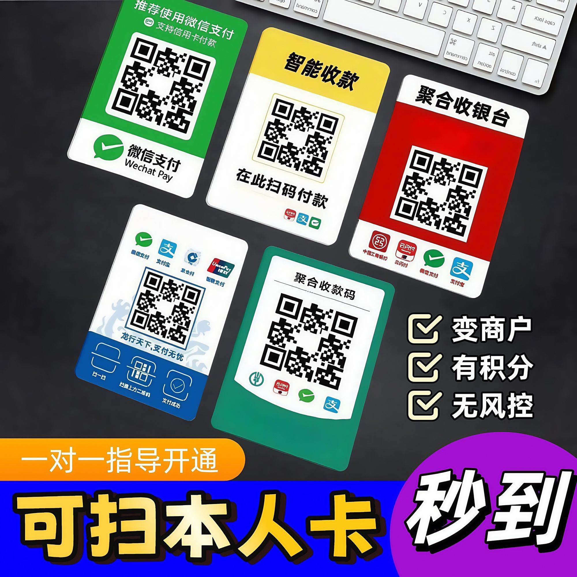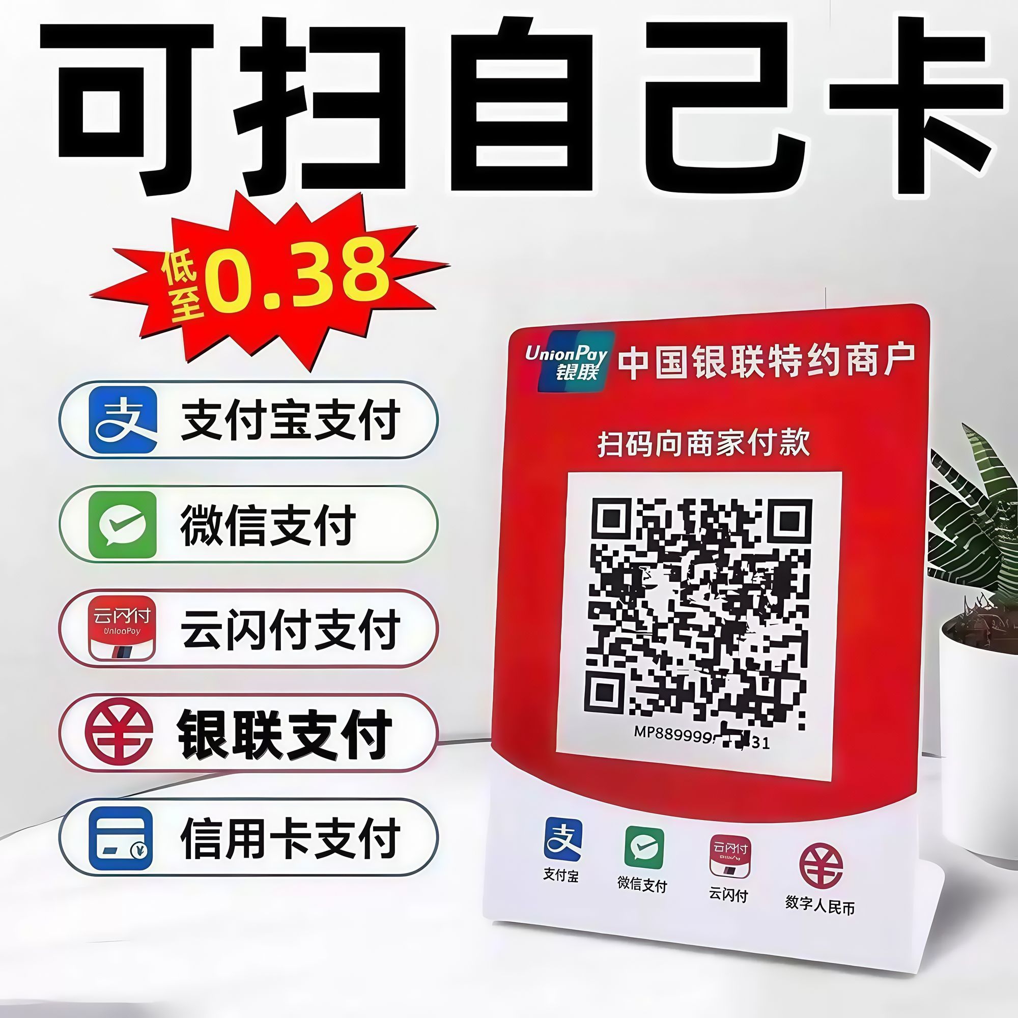 【可扫自己卡】智能多通道新款变商户一码通用银盛三合一吊牌挂牌