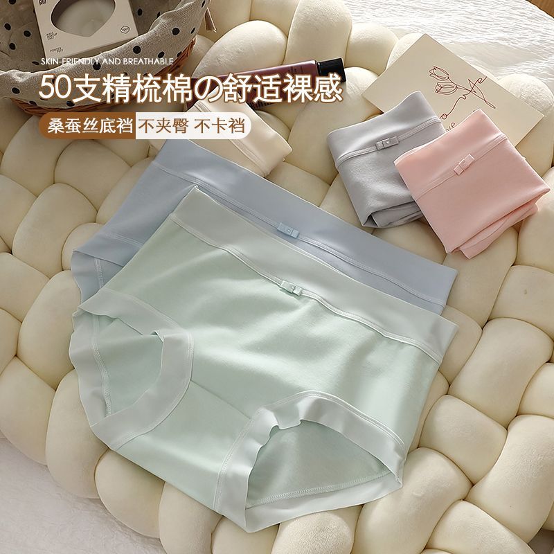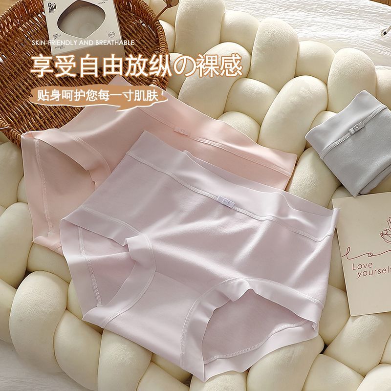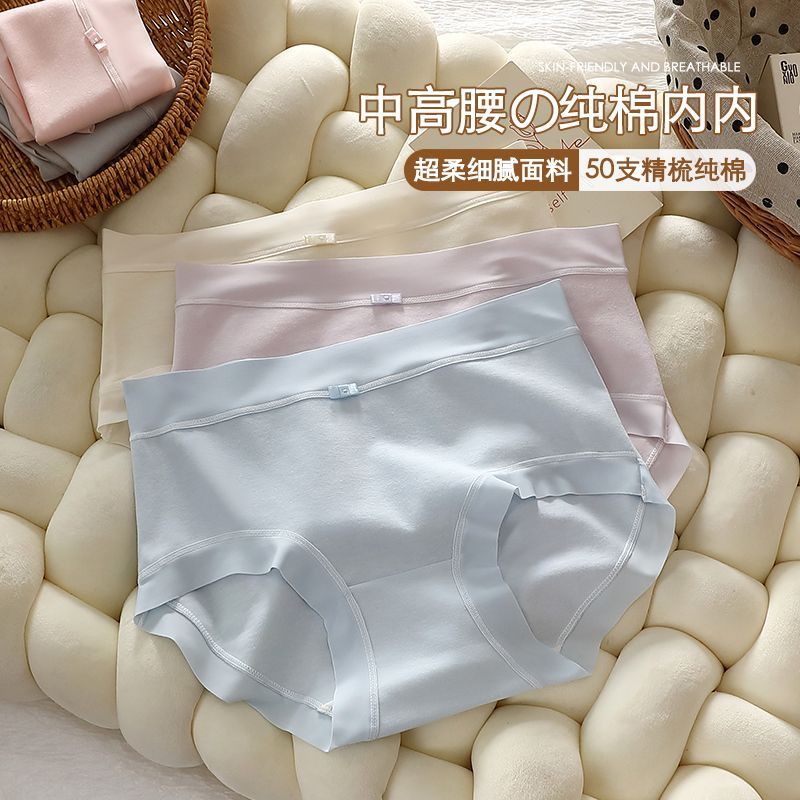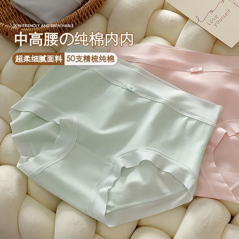 精灵物语内裤女纯棉7A抗抑菌学生中腰加长裆透气轻奢女士三角裤