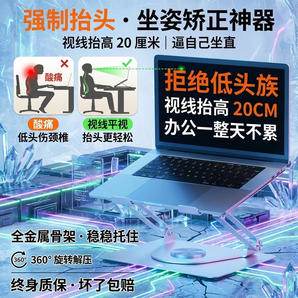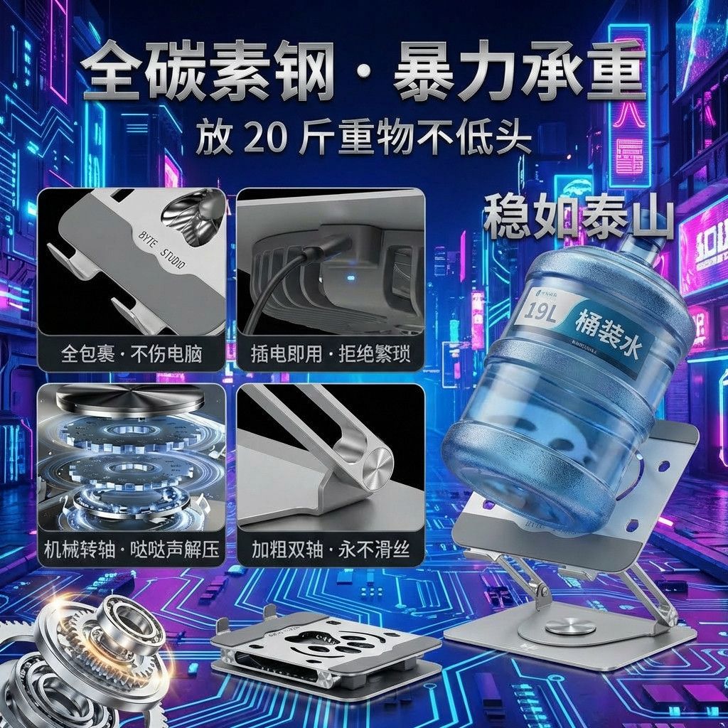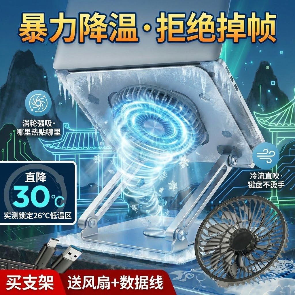笔记本电脑支架带散热风扇可360旋转升降折叠外置磁吸静音风扇