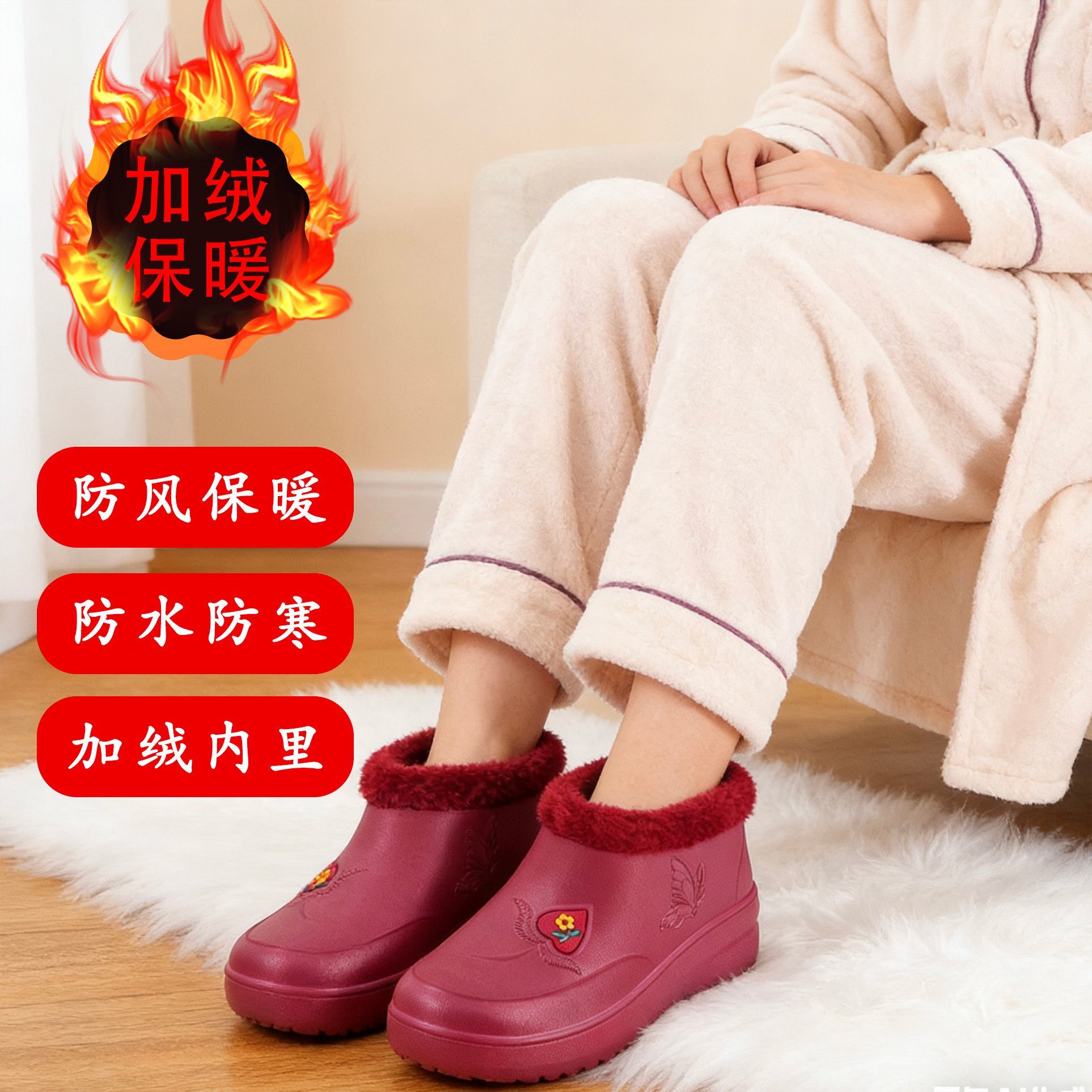 冬季超轻一体成型防水鞋加绒外穿防水棉鞋户外工作鞋保暖雨鞋棉靴