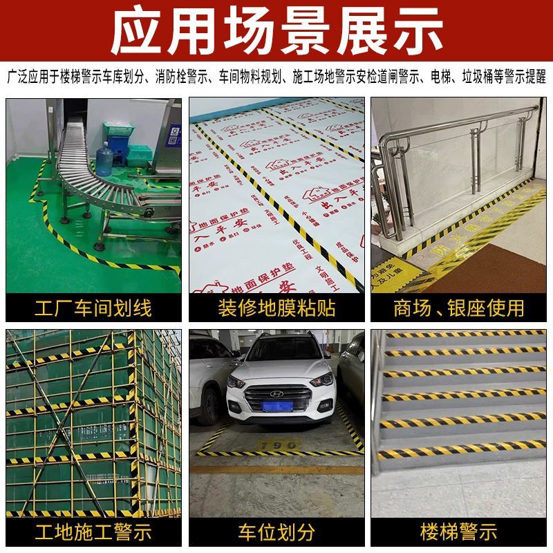 黄黑红色反光pvc安全警示胶带斑马线警戒地标贴地板地面安全胶带