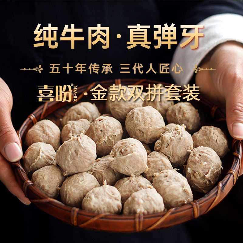 喜盼金款纯牛肉丸半成品菜牛筋丸子手工正宗汕头特产烧烤火锅食材