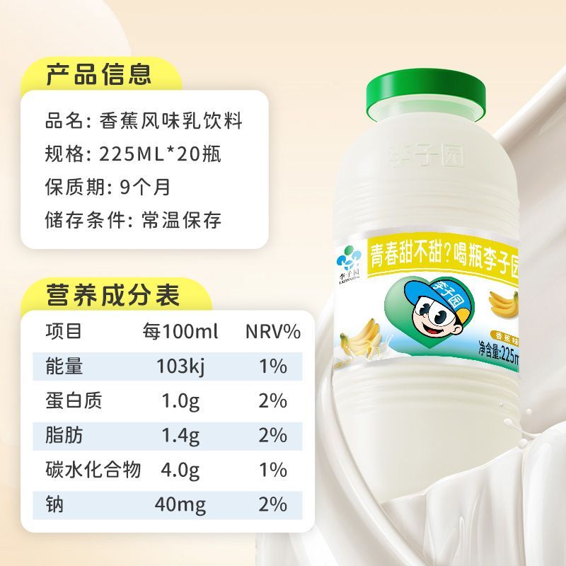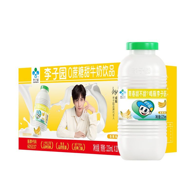 李子园甜牛奶225ml*20瓶零蔗糖香蕉味儿童学生乳饮整箱过年送礼