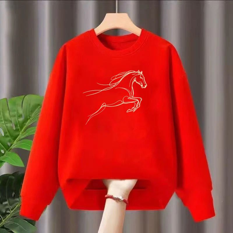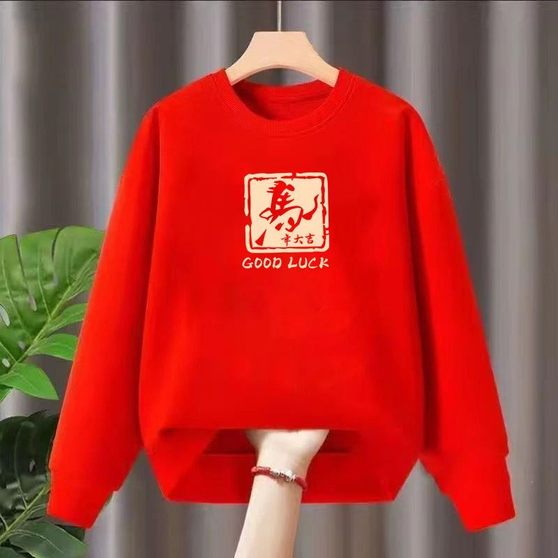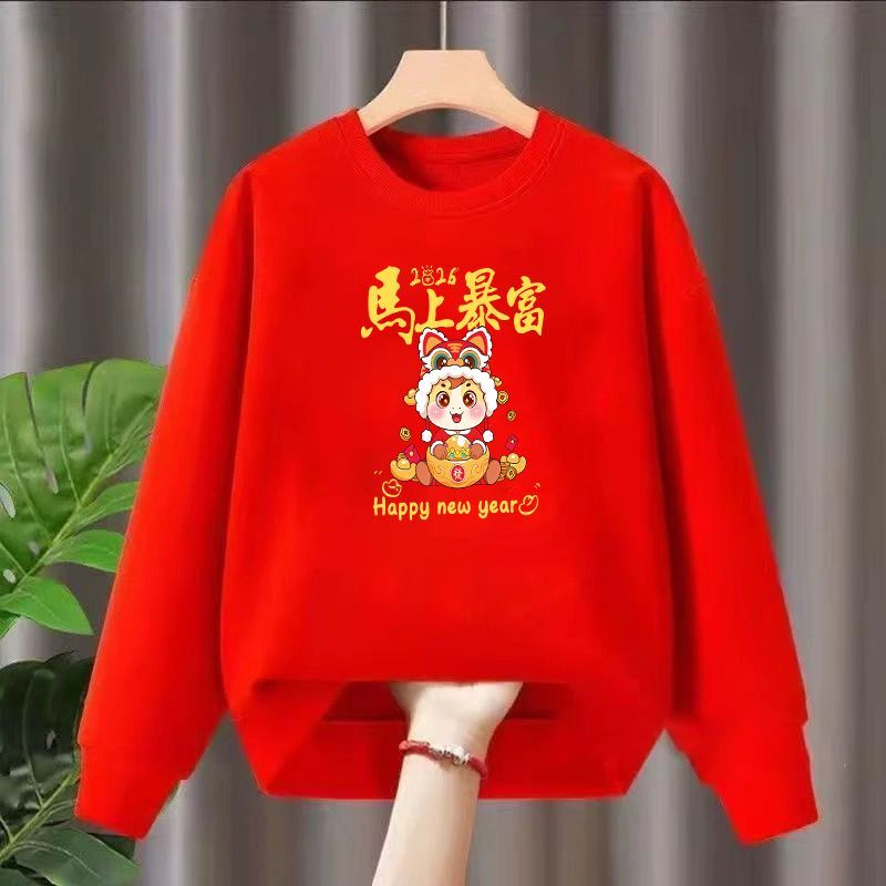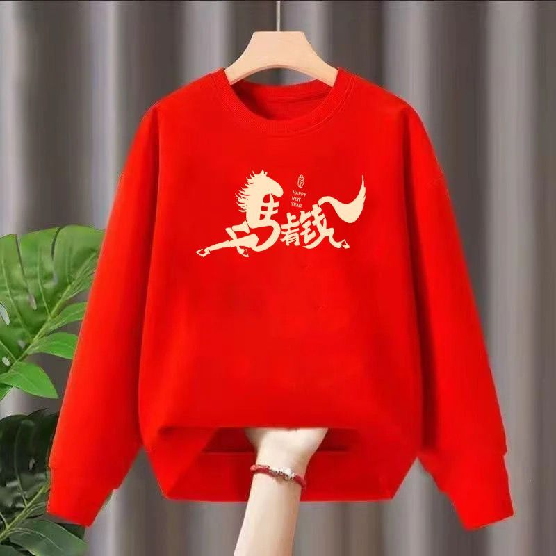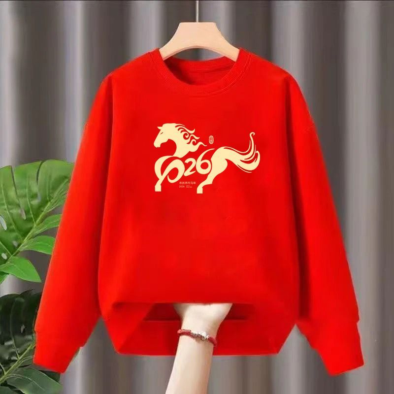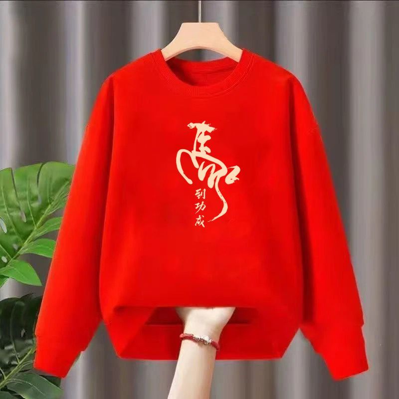 红色圆领卫衣秋冬新款2026新年马年本命年加绒加厚休闲喜庆衣服