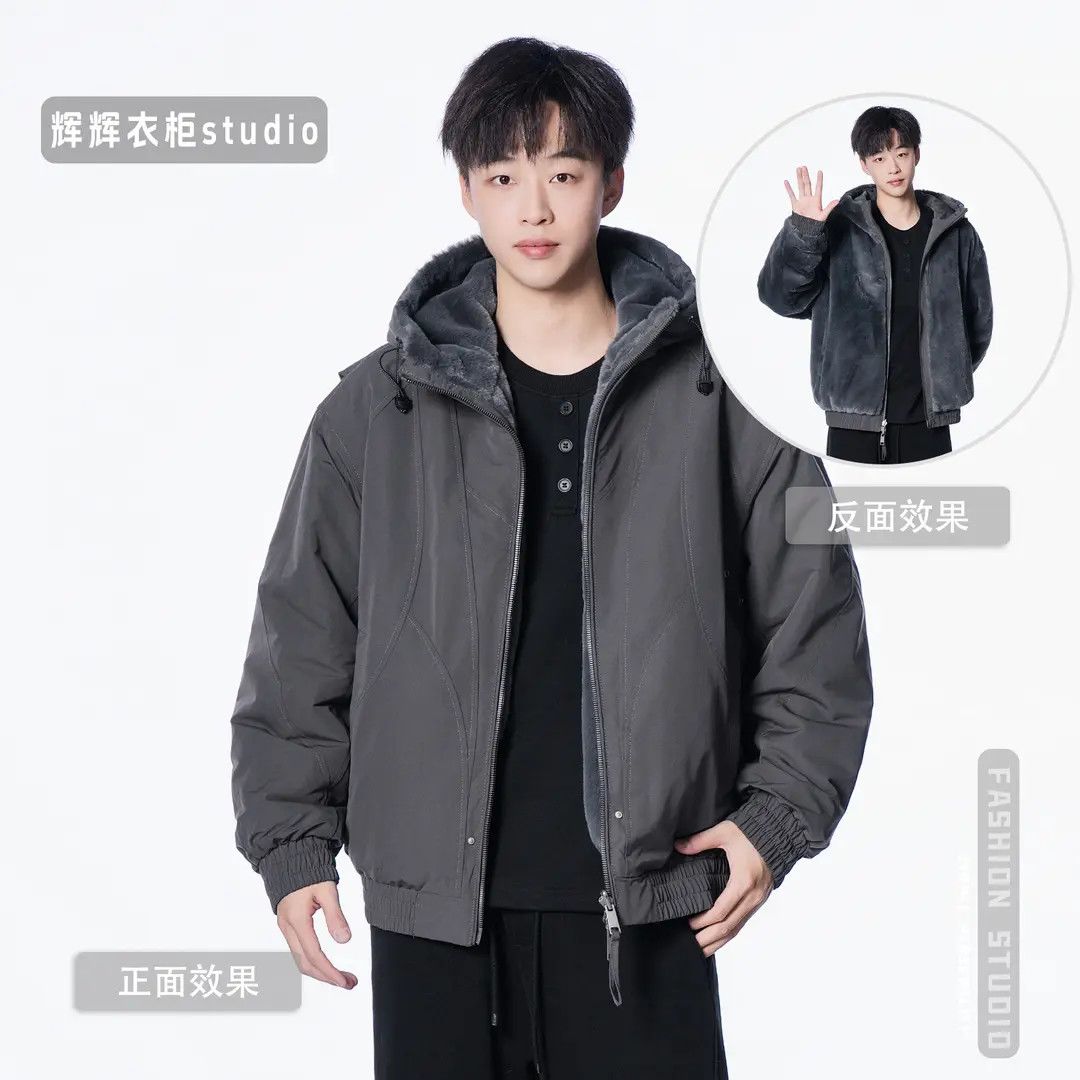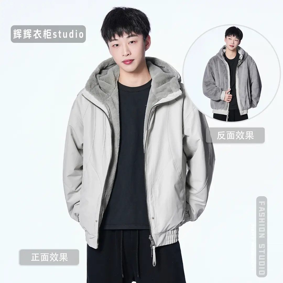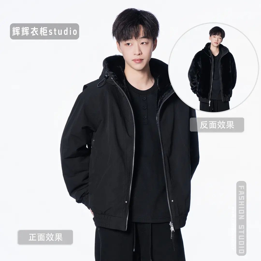 【双面穿座山雕】原创2.0升级加厚连帽双色银狐绒情侣飞行夹克外