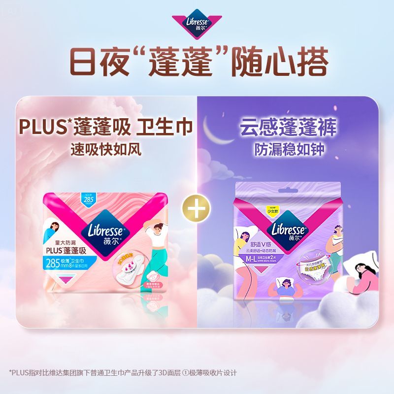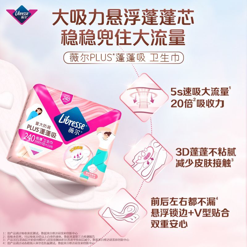 薇尔卫生巾PLUS蓬蓬吸姨妈巾240mm50片量大速吸不粘腻
