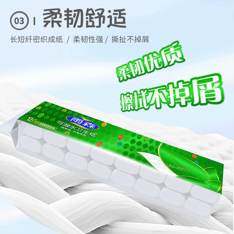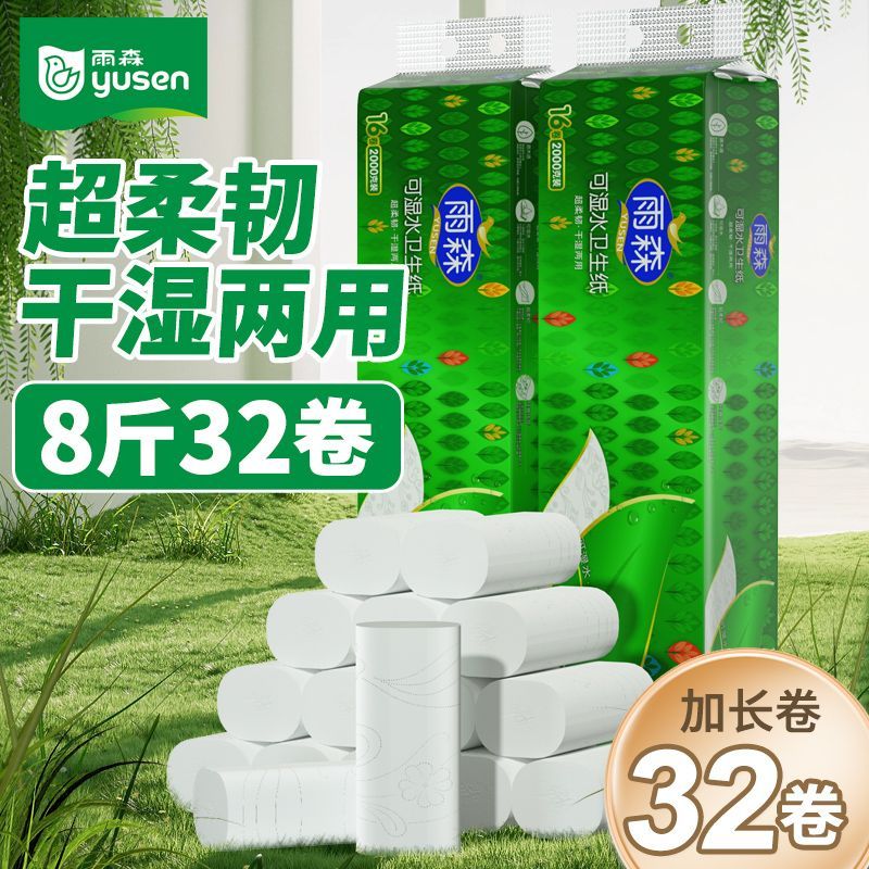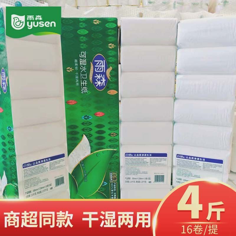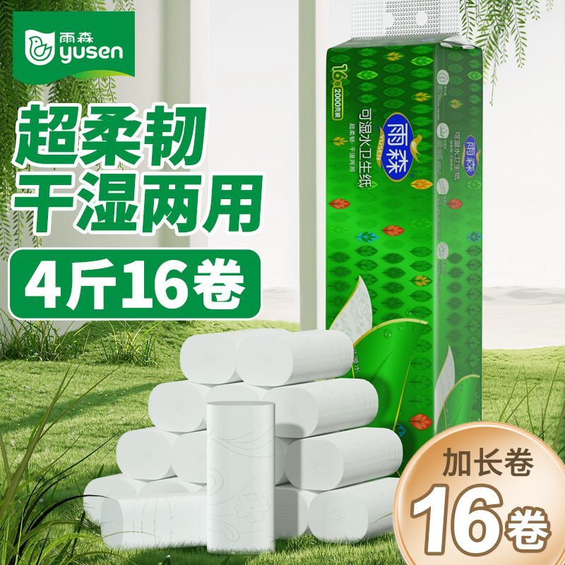【4斤16长卷】雨森卷纸卫生纸5层可湿水实惠装无芯学生厕纸长卷纸