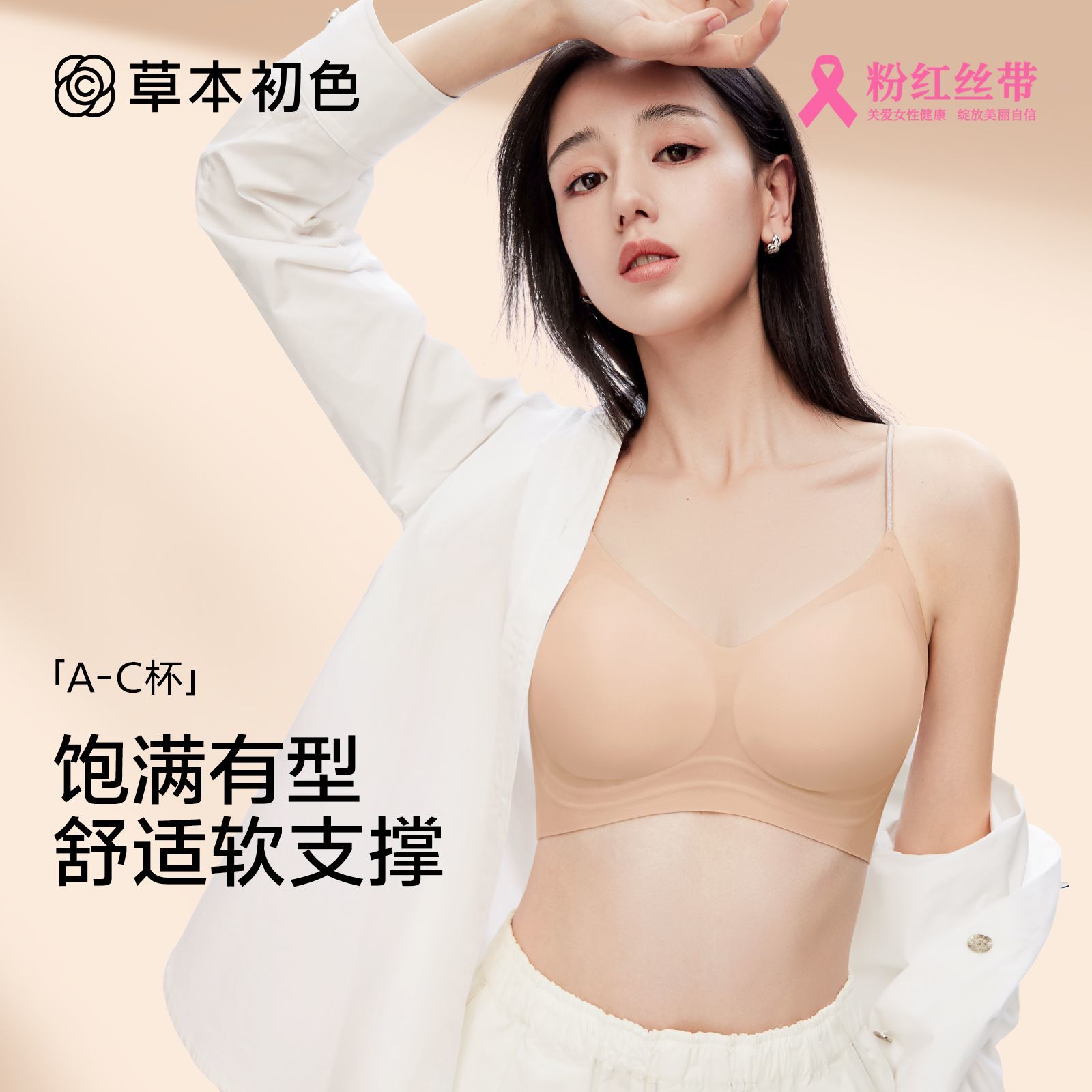 (3件装)草本初色内衣女新款隐形一体式无钢圈背心细闪肩带文胸罩