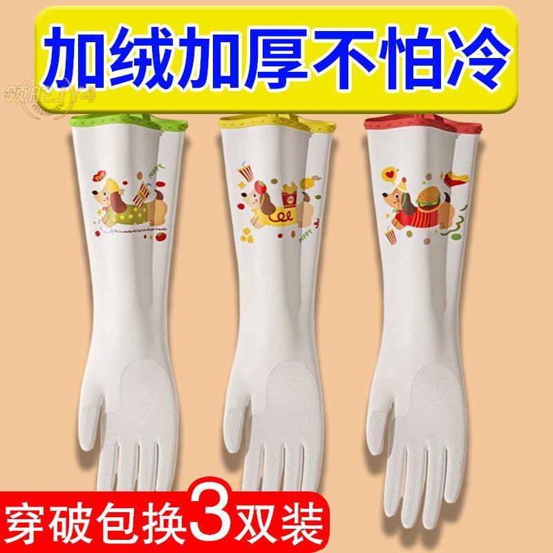家务洗碗手套女干活胶皮长款超厚橡胶加厚加绒防水乳胶洗衣服耐用