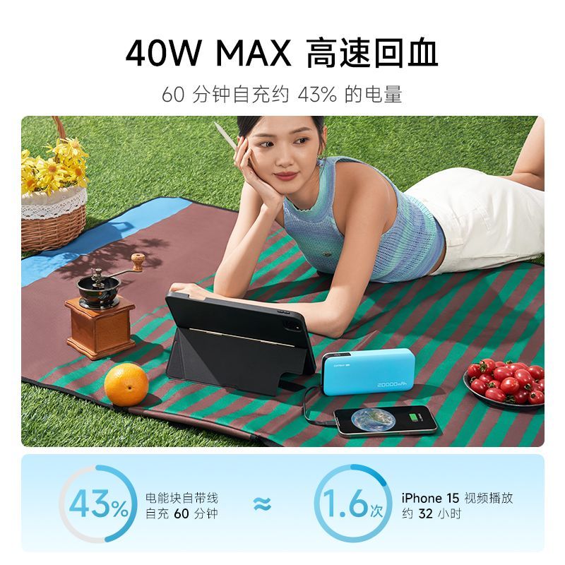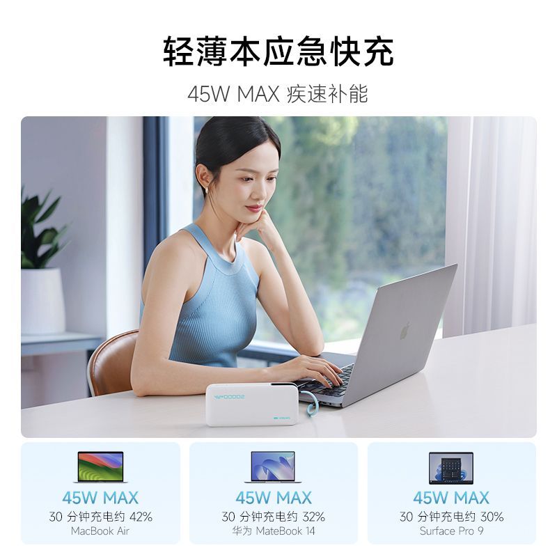 CUKTECH酷态科20000mAh大容量快充55W自带线移动电源便携可上飞机