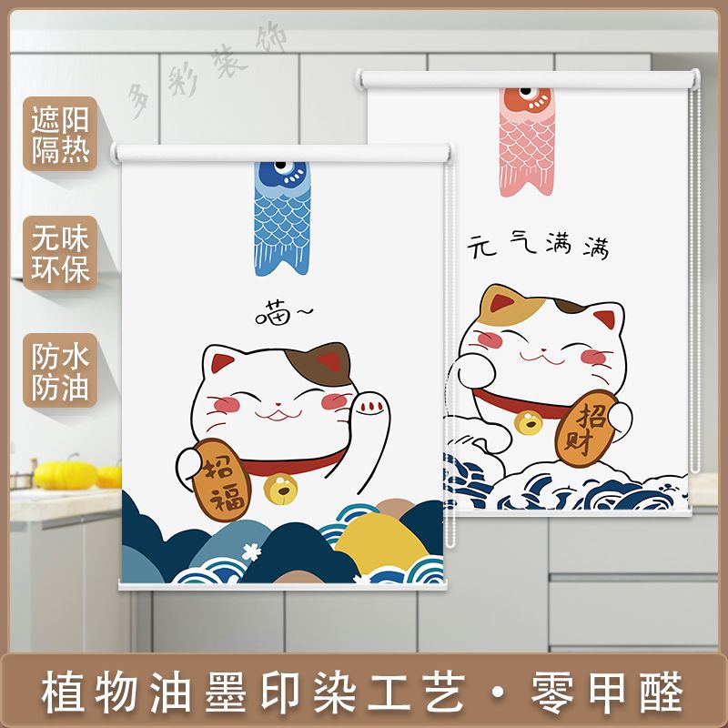 定制北欧风家用遮阳防水卷帘免打孔客厅阳台卧室厨房卫浴遮光窗帘