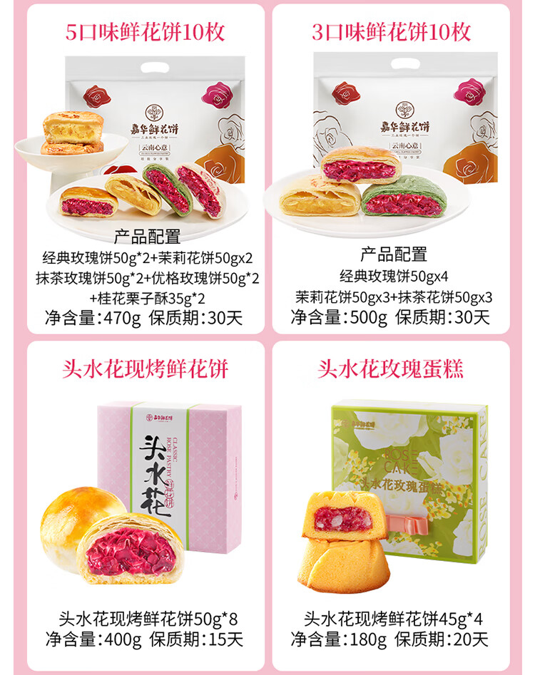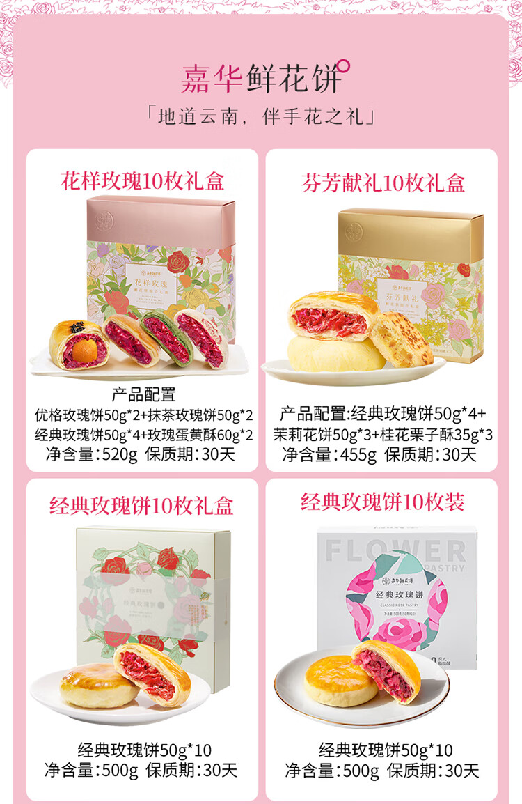 嘉华鲜花饼经典玫瑰饼云南特产伴手礼糕点心小吃面包休闲零食早餐 经典玫瑰饼35g*10枚