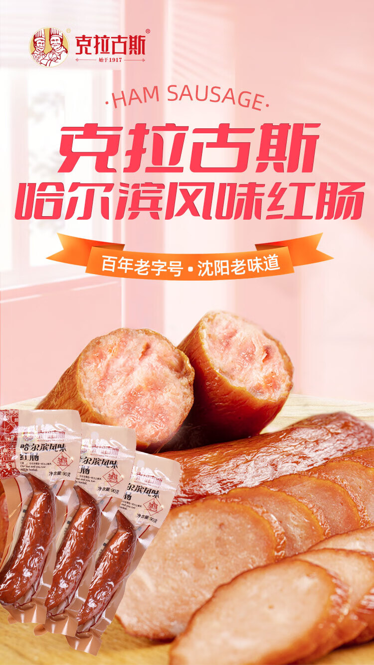 克拉古斯 哈尔滨风味红肠猪肉俄式风味香肠休闲零食早餐开袋即食东北特产 哈尔滨红肠90g*10根 独立包装 方便携带 6个月保质期