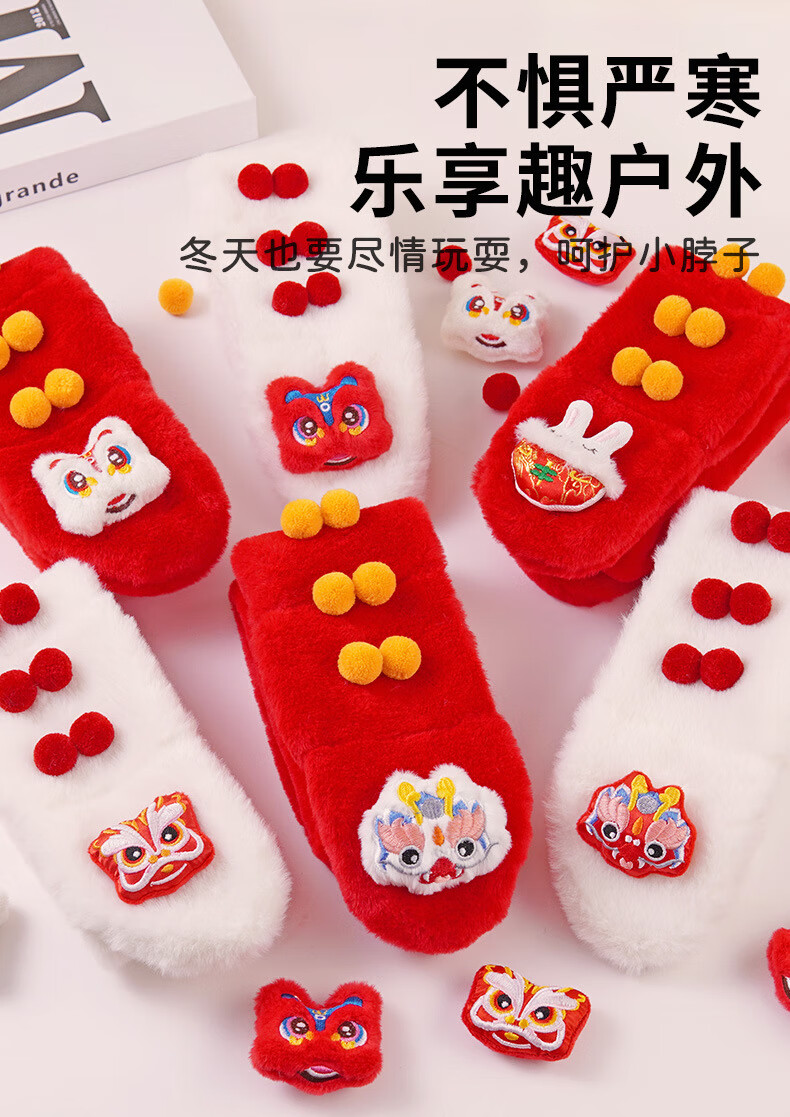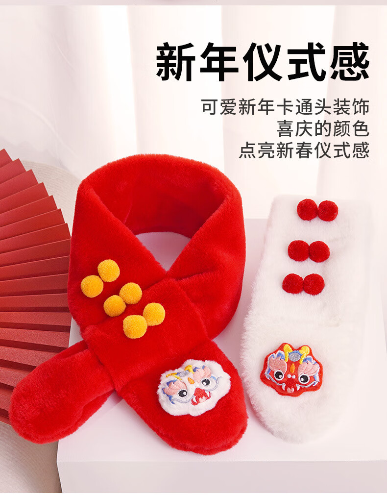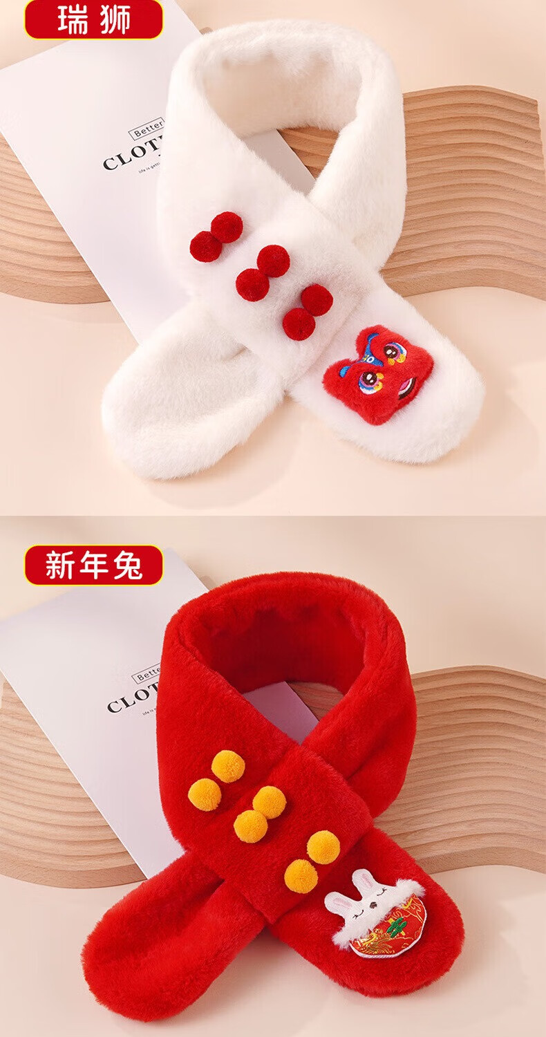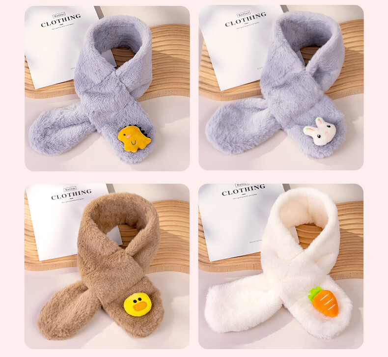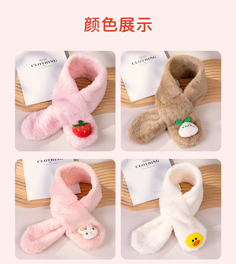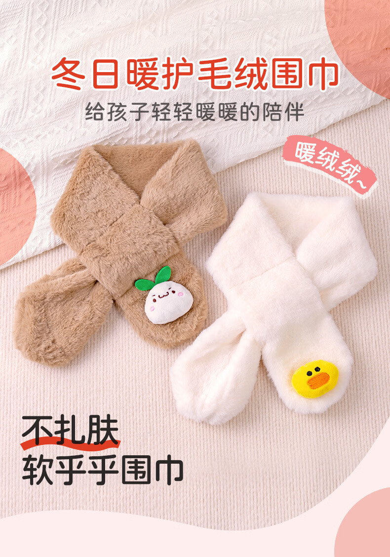 彩虹房子秋冬儿童围巾卡通可爱加厚保暖防风护颈男女童宝宝交叉毛绒围脖 针织围巾米色-参考1-10岁-130*9cm