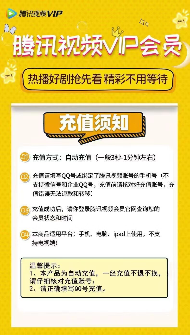 腾讯视频会员年卡 腾讯会员一年 腾讯视频VIP会员12月 腾讯vip会员年费会员自动充值 腾讯VIP