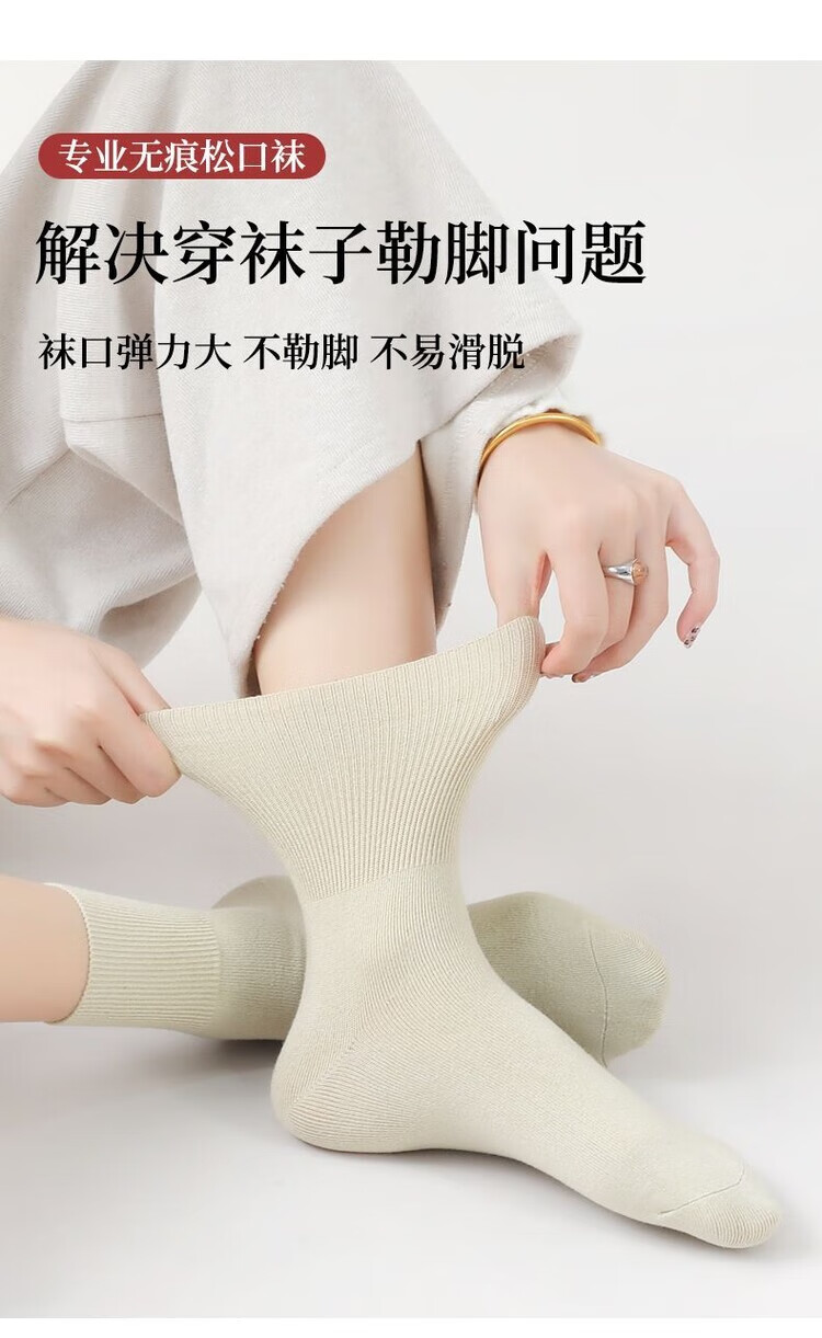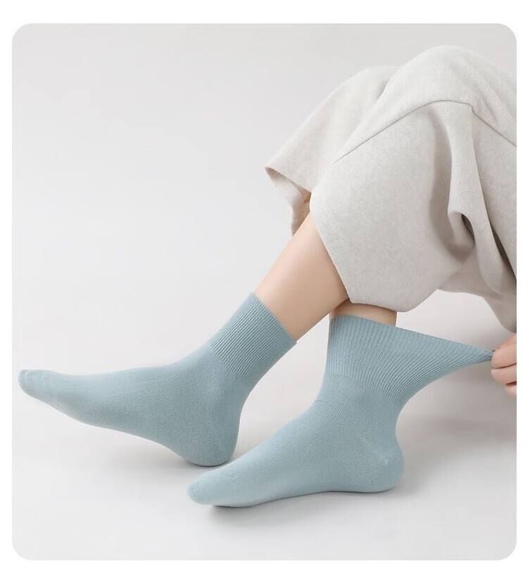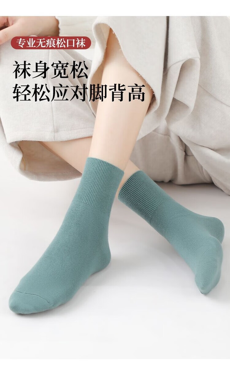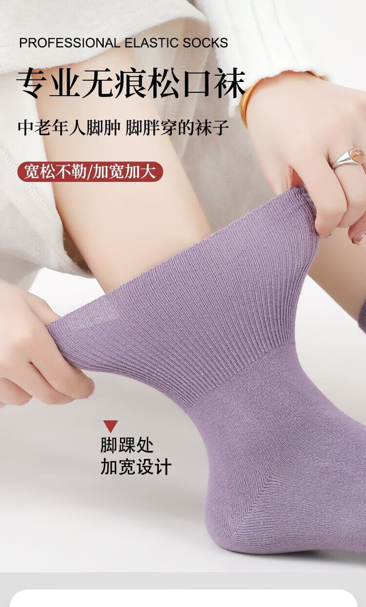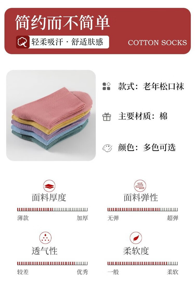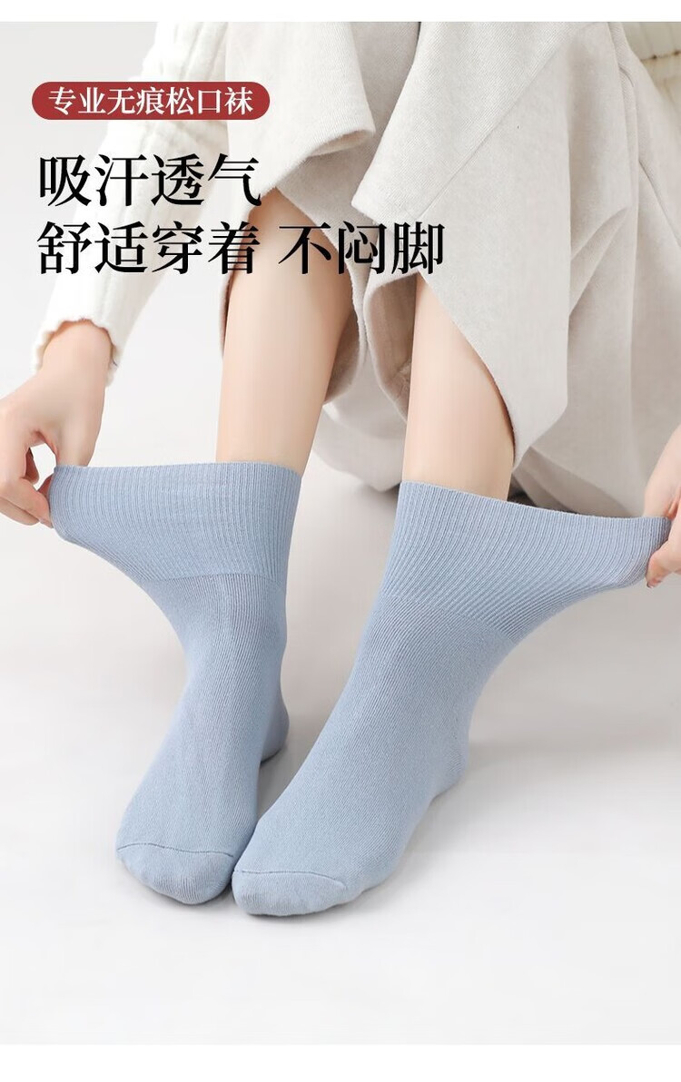 AILUKI袜子中老年袜子宽松中筒孕妇男春秋冬加厚棉不勒腿袜子松口女袜 女款松口浅彩-5双【35-40】码