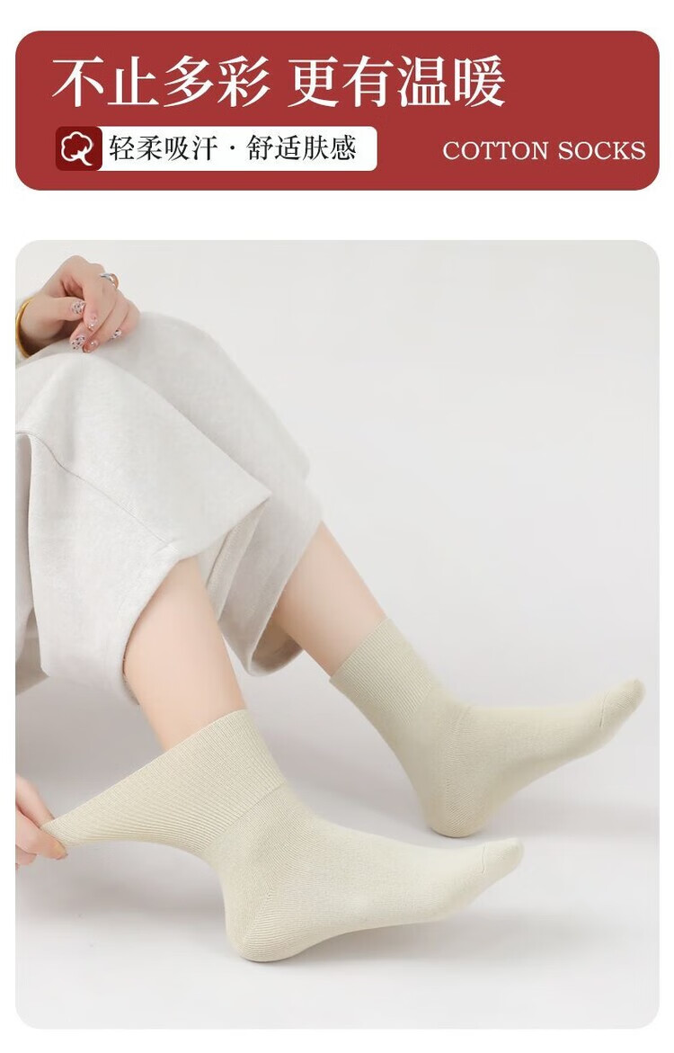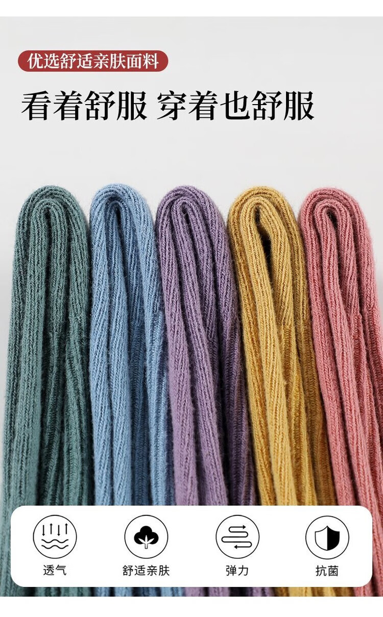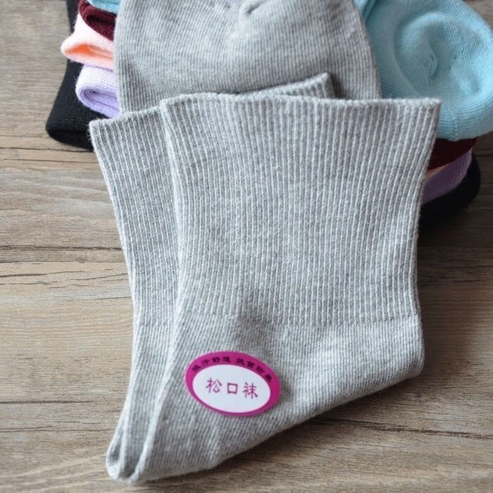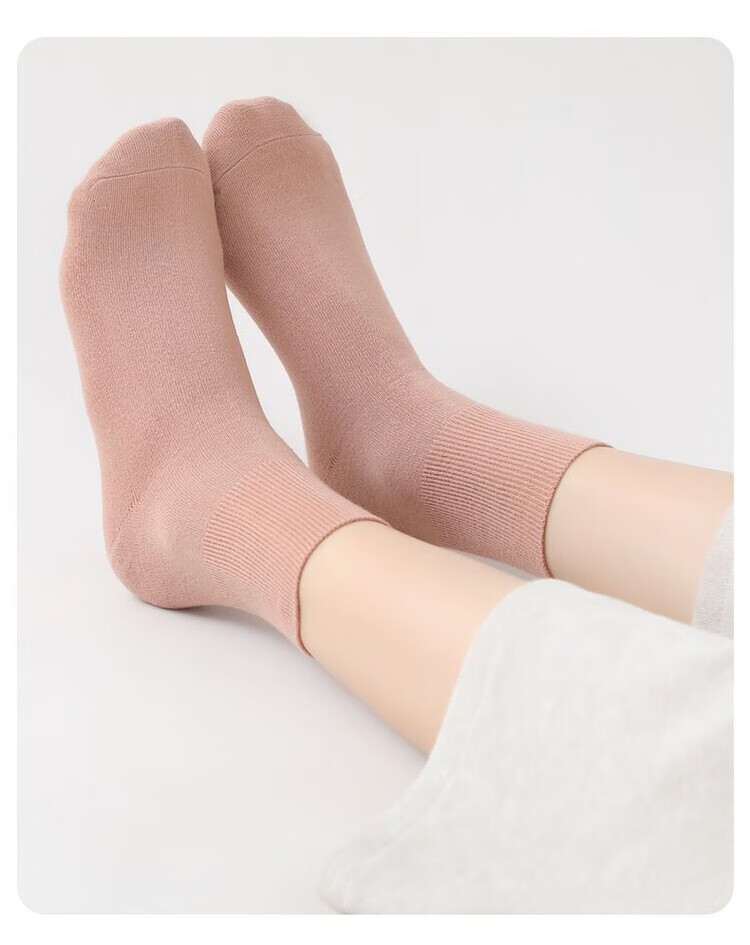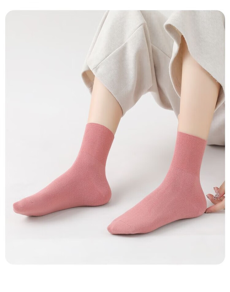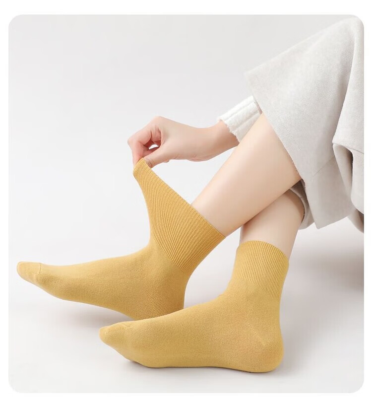 AILUKI袜子中老年袜子宽松中筒孕妇男春秋冬加厚棉不勒腿袜子松口女袜 女款松口浅彩-5双【35-40】码