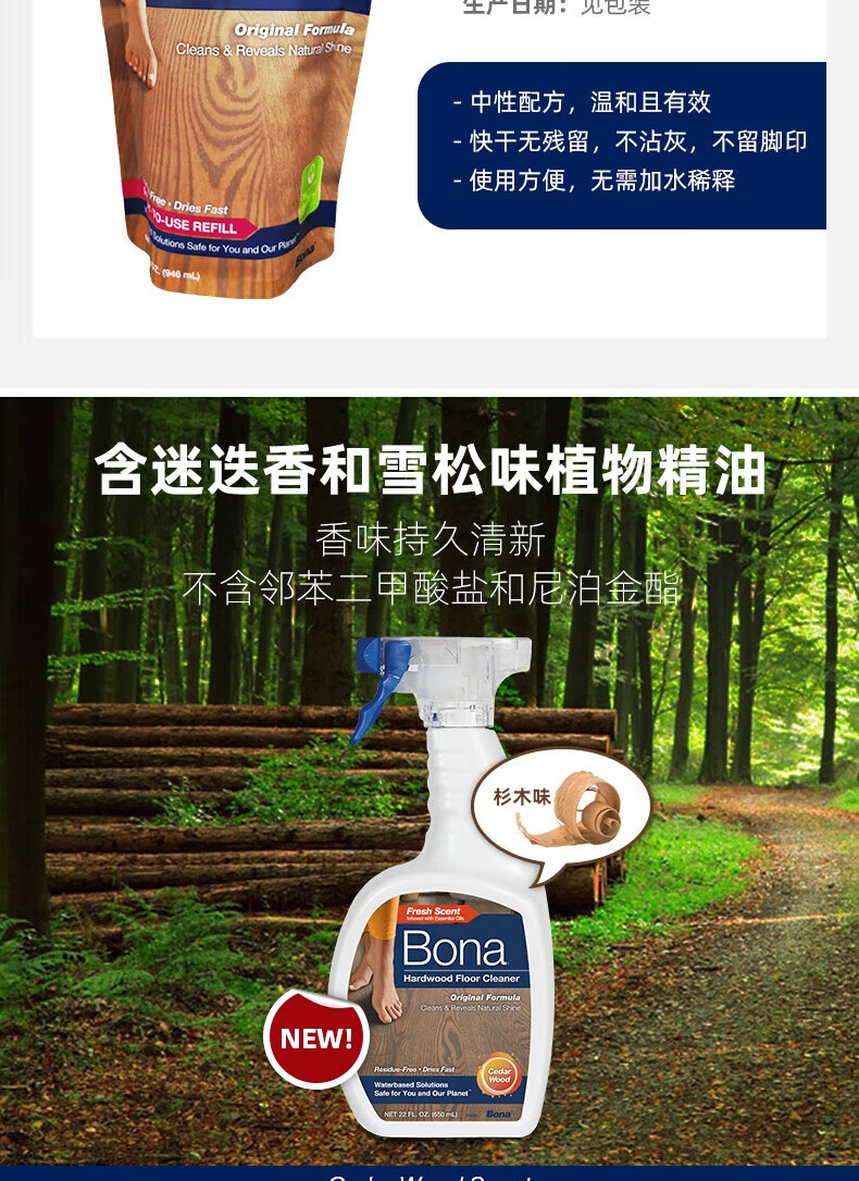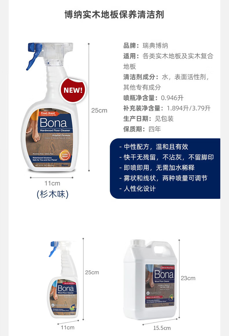 博纳BONA实木地板保养清洁剂 美国原装进口 地板护理剂去污剂护理剂 1000ml 1瓶 【喷瓶装】