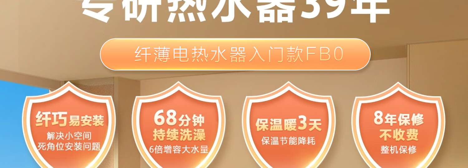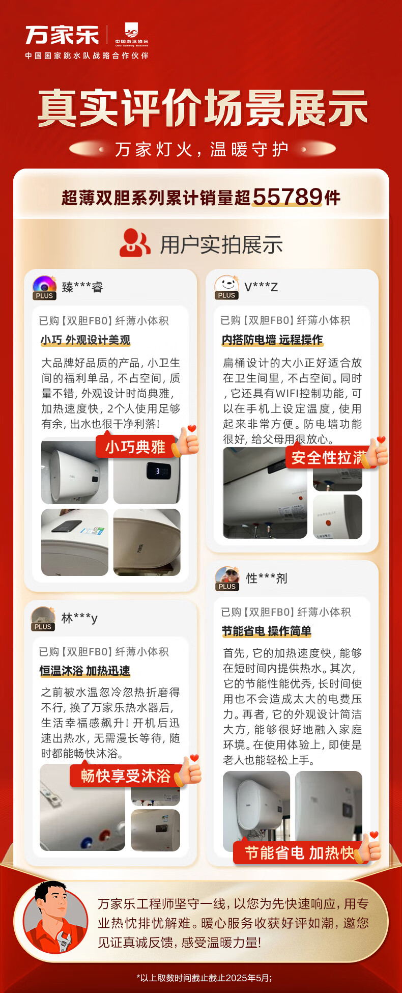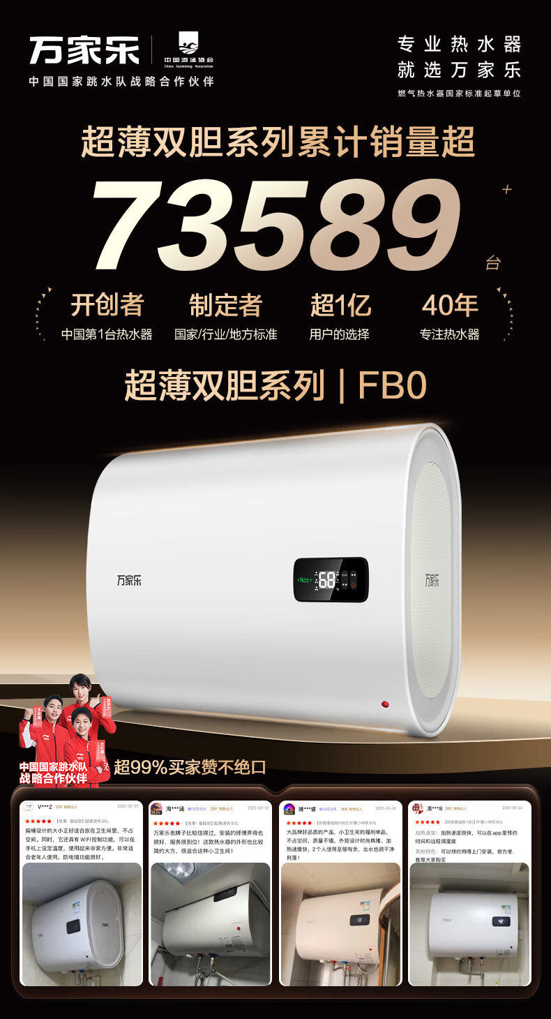 万家乐电热水器【节能大师D50-FB0纤薄小尺寸】50升 扁桶 2100W速热大水量节能手机操控储水式家用