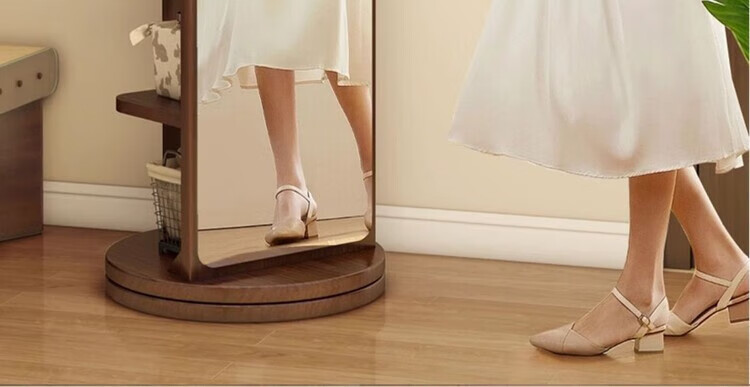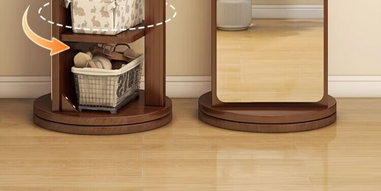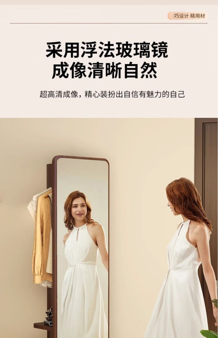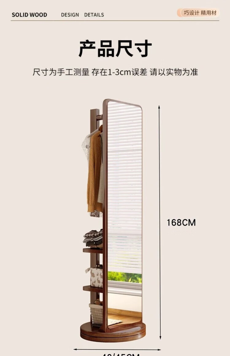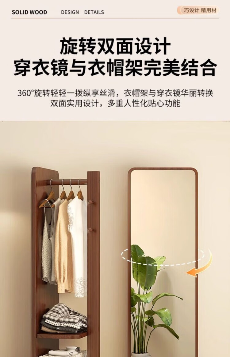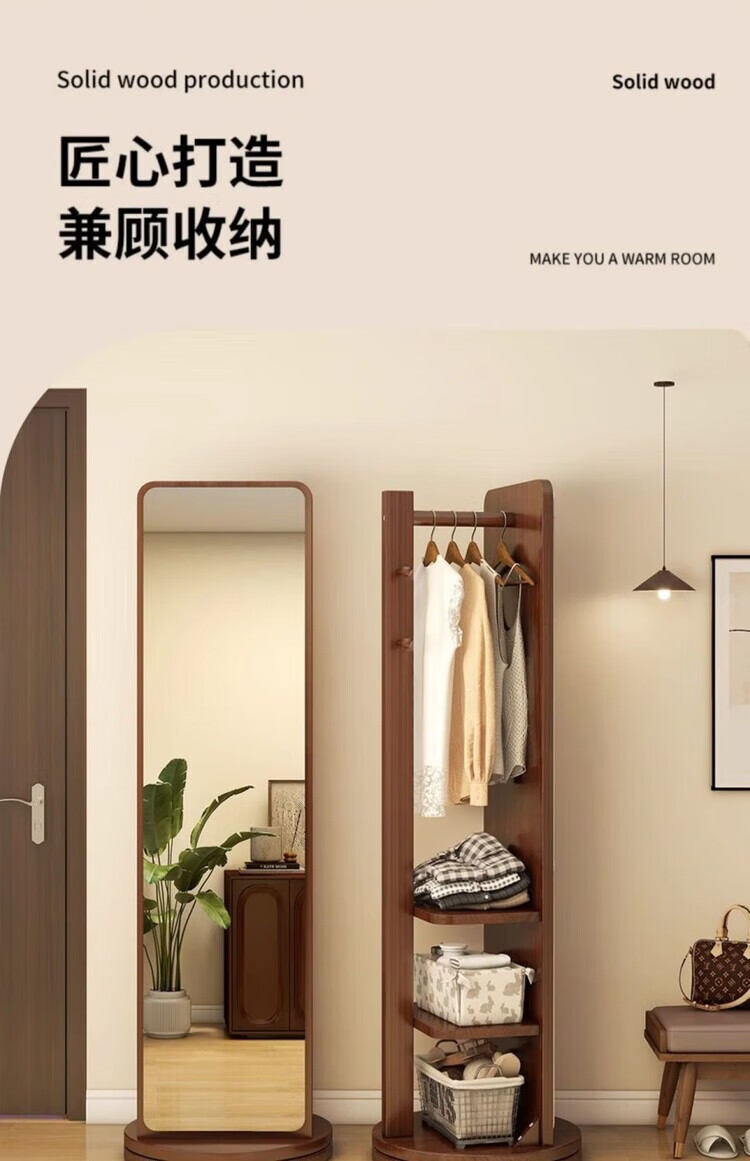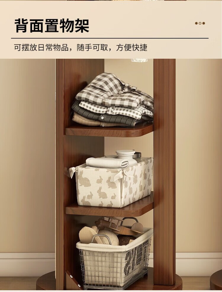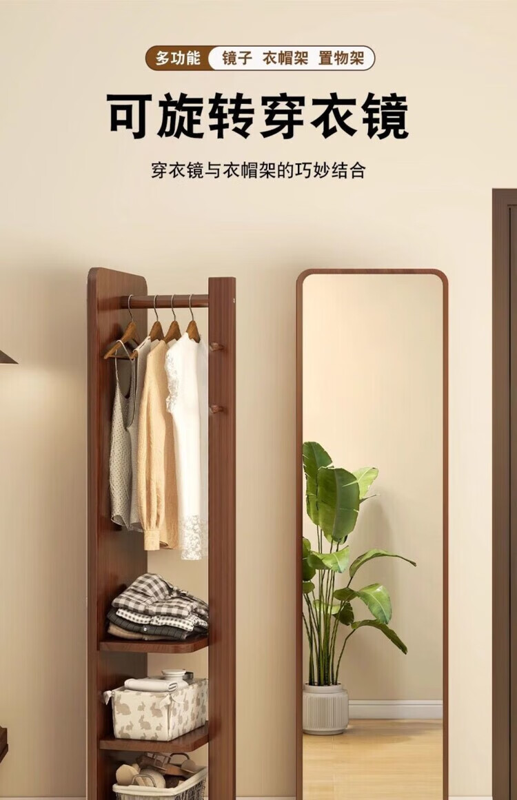 倘然之家柜镜梳妆镜旋转穿衣镜衣服架落地式可移动卧室衣帽架新款落地镜 【胡桃色- 多功能镜】旋转+置物-挂衣 【拱形镜-中号双层款】-工厂直销