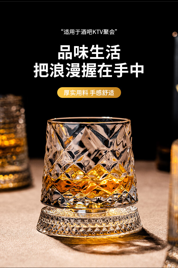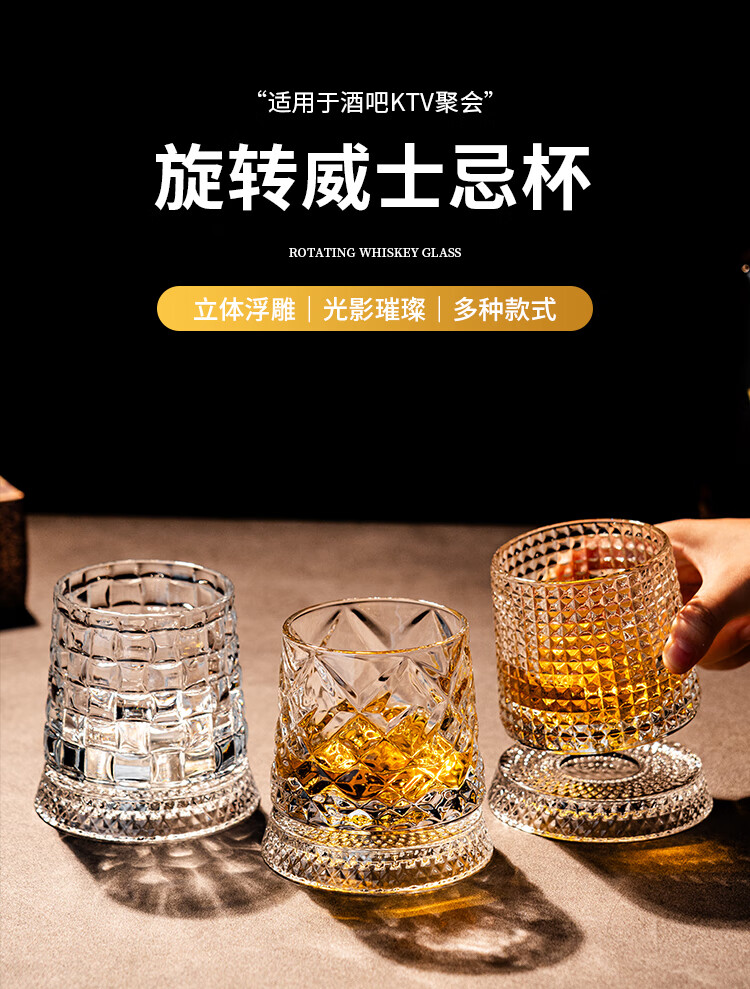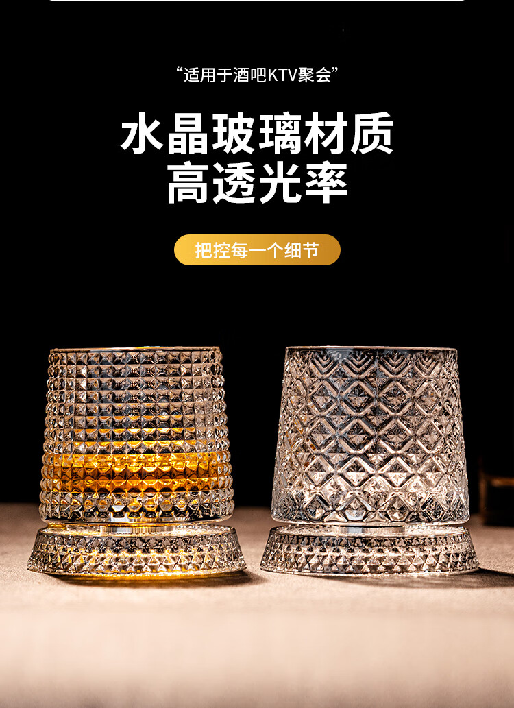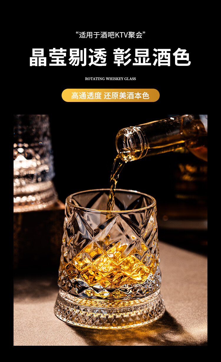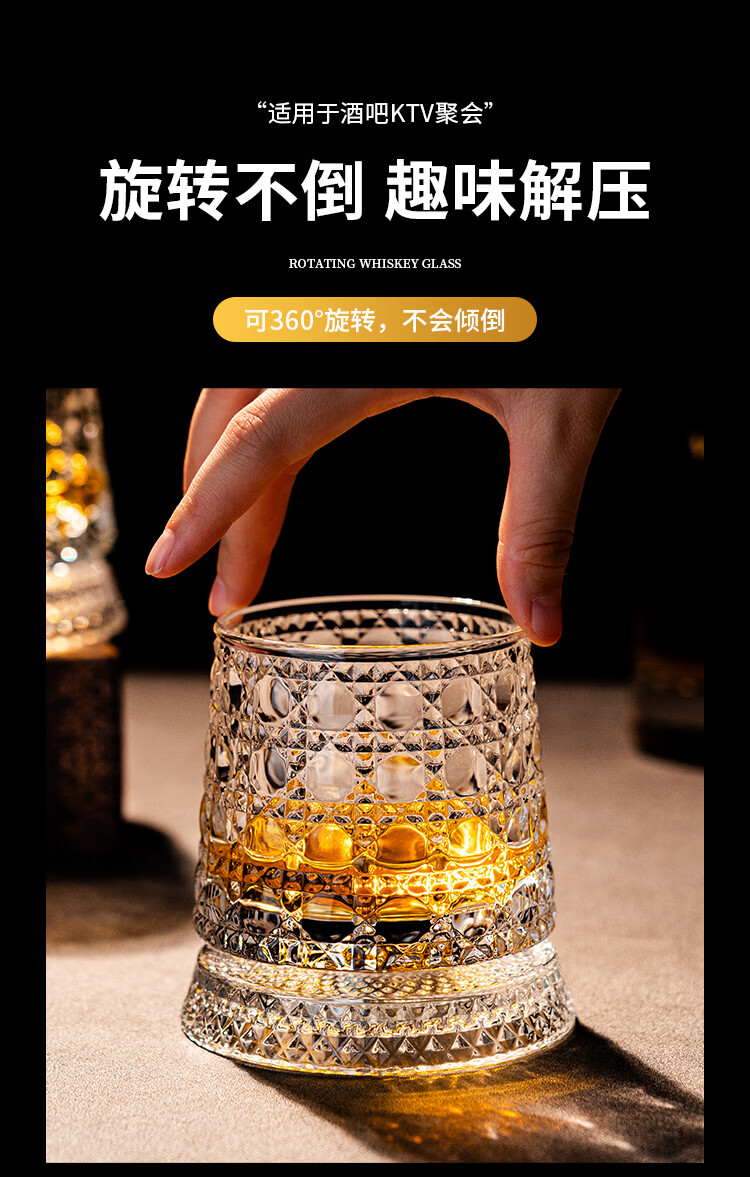 简漾轻奢高档威士忌酒杯古典水晶杯不倒翁旋转解压啤酒杯高级感洋酒杯 【玻璃底座】柏林纹旋转杯-1个装
