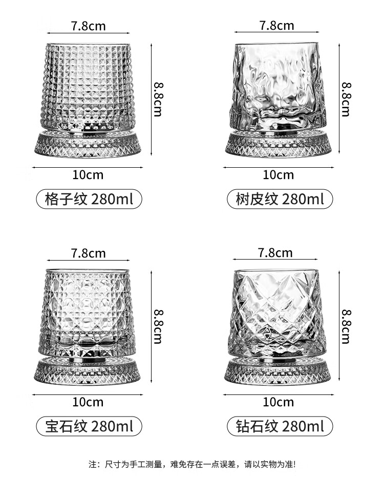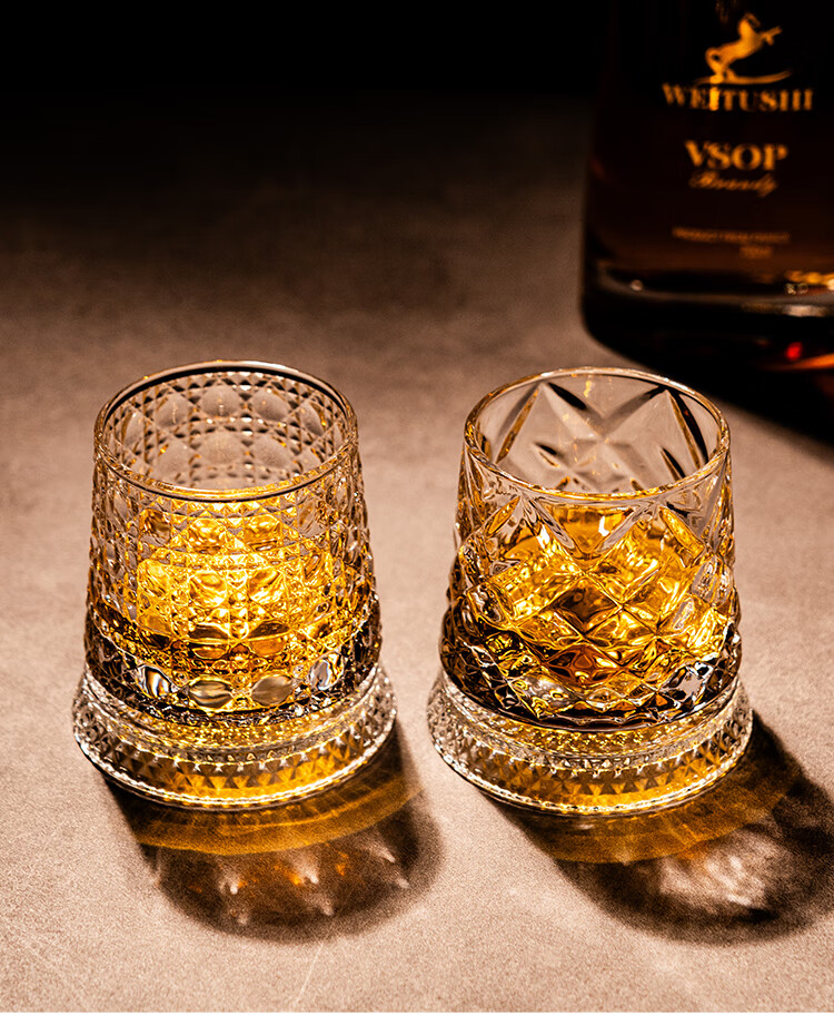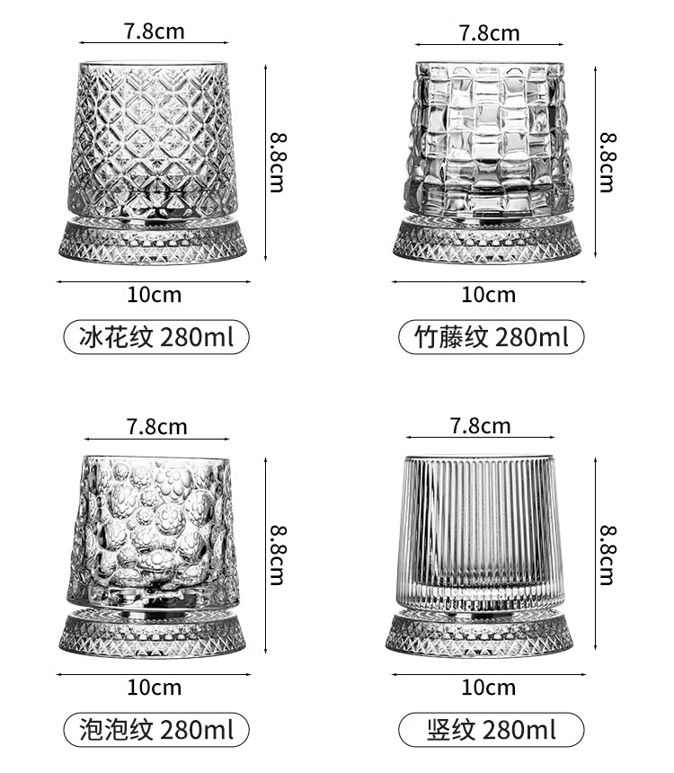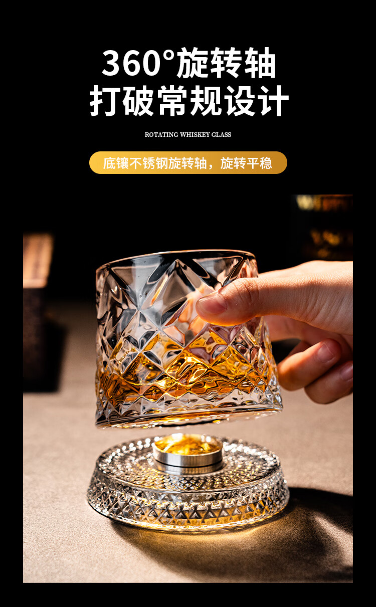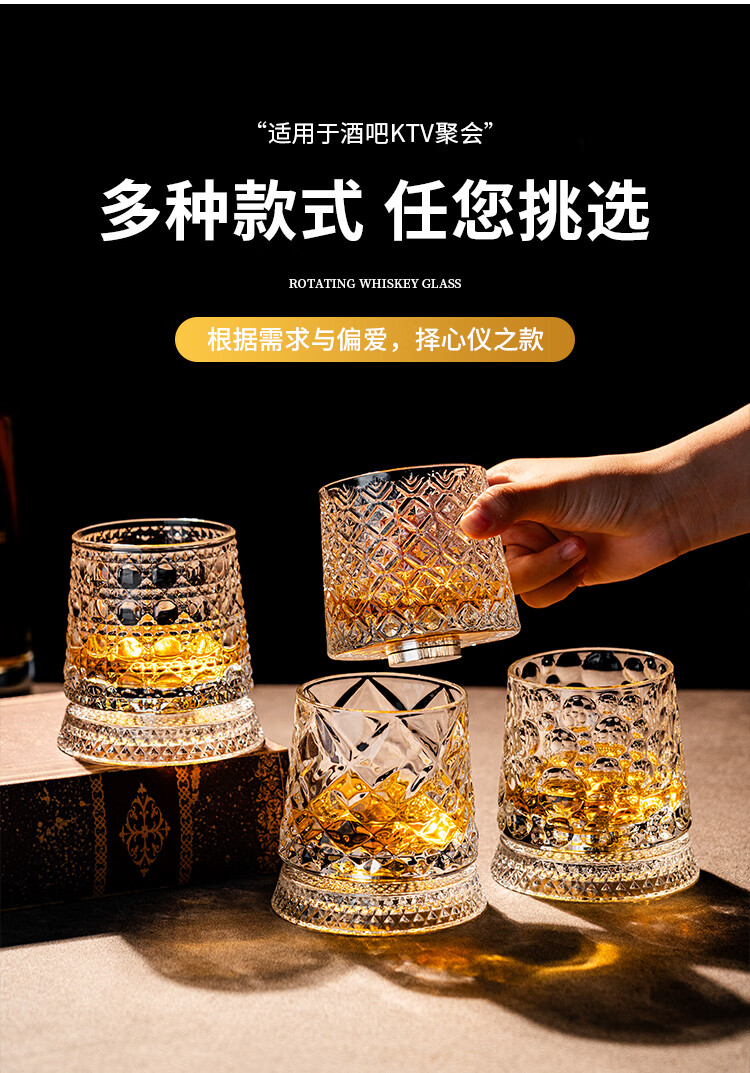 简漾轻奢高档威士忌酒杯古典水晶杯不倒翁旋转解压啤酒杯高级感洋酒杯 【玻璃底座】柏林纹旋转杯-1个装