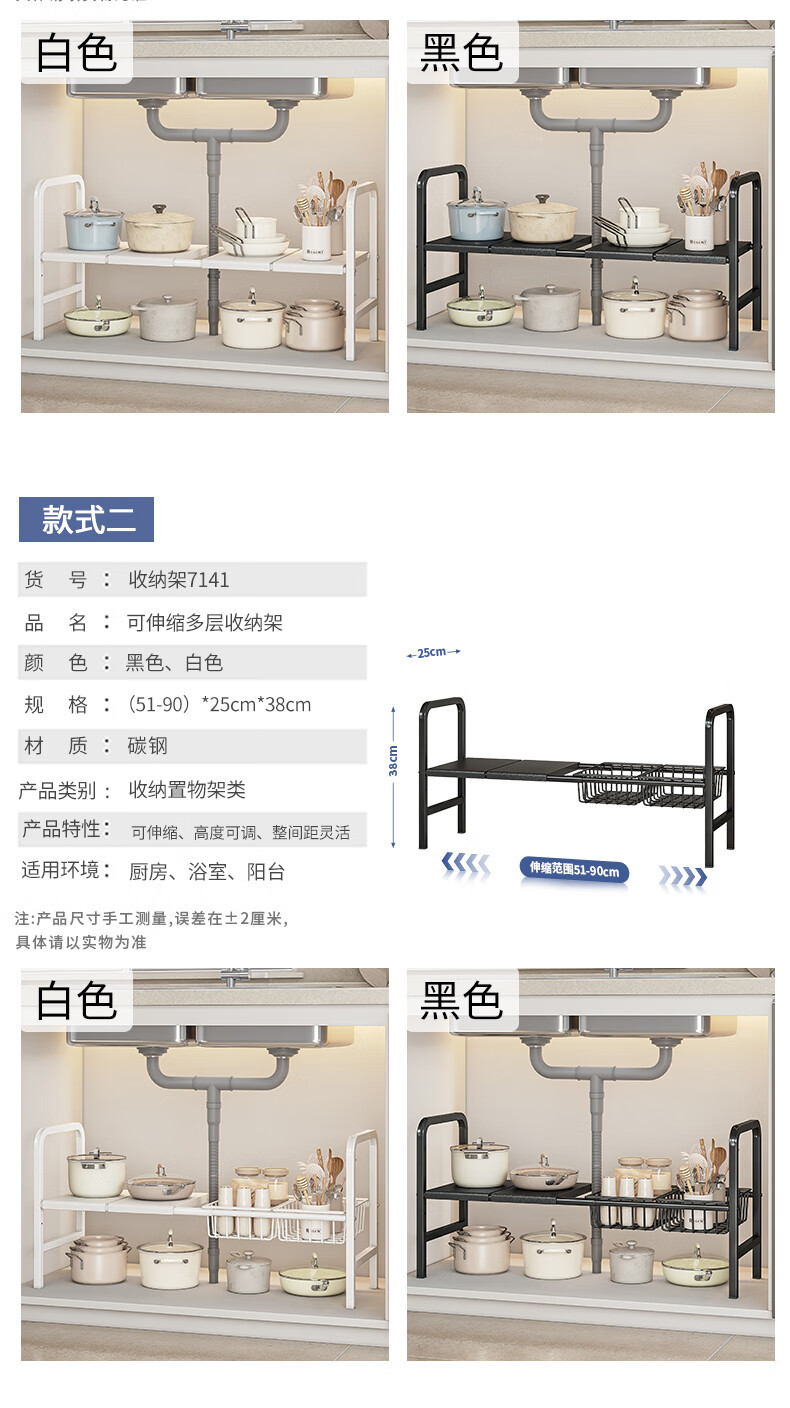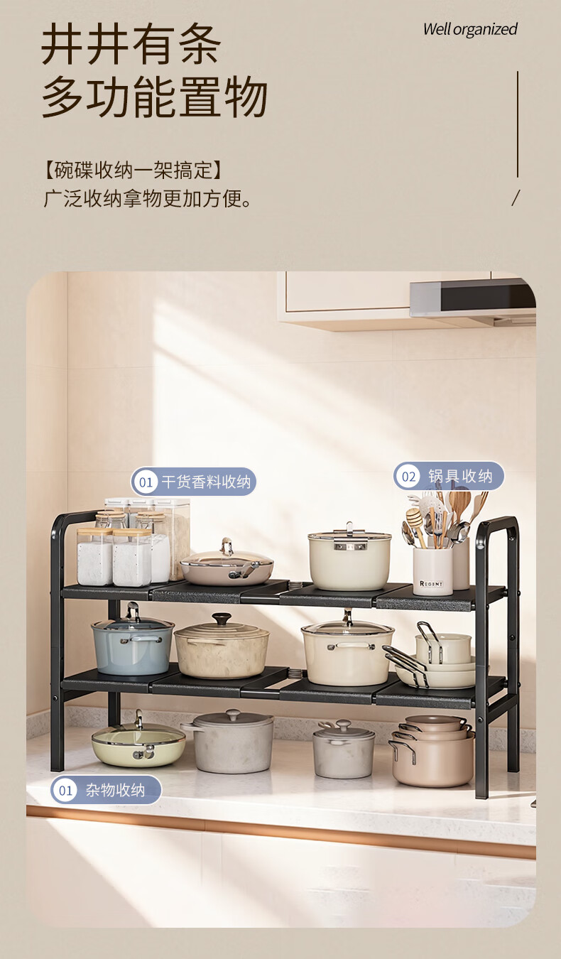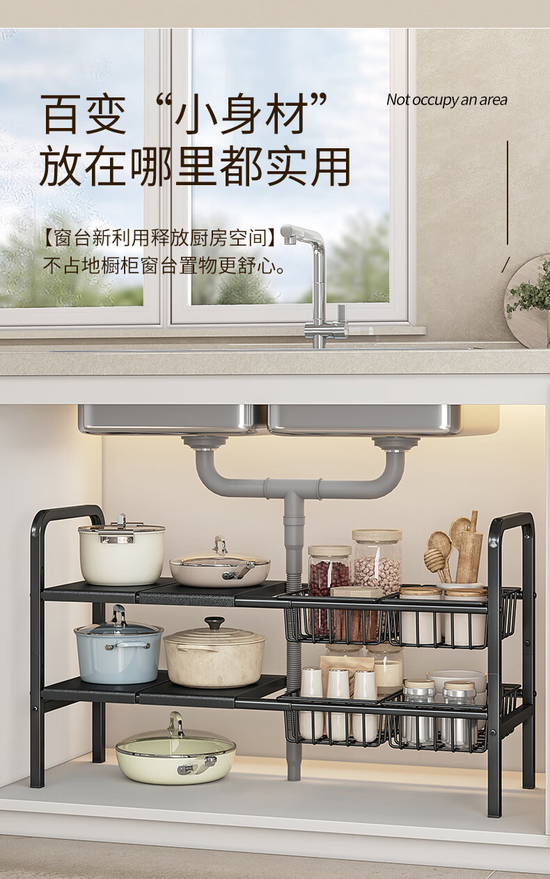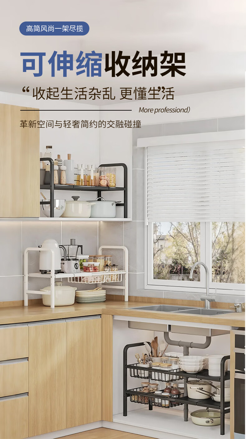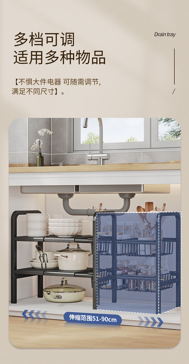 WOJIA厨房下水槽多功能置物架橱柜柜内可伸缩分层架子柜子多层锅具收纳
