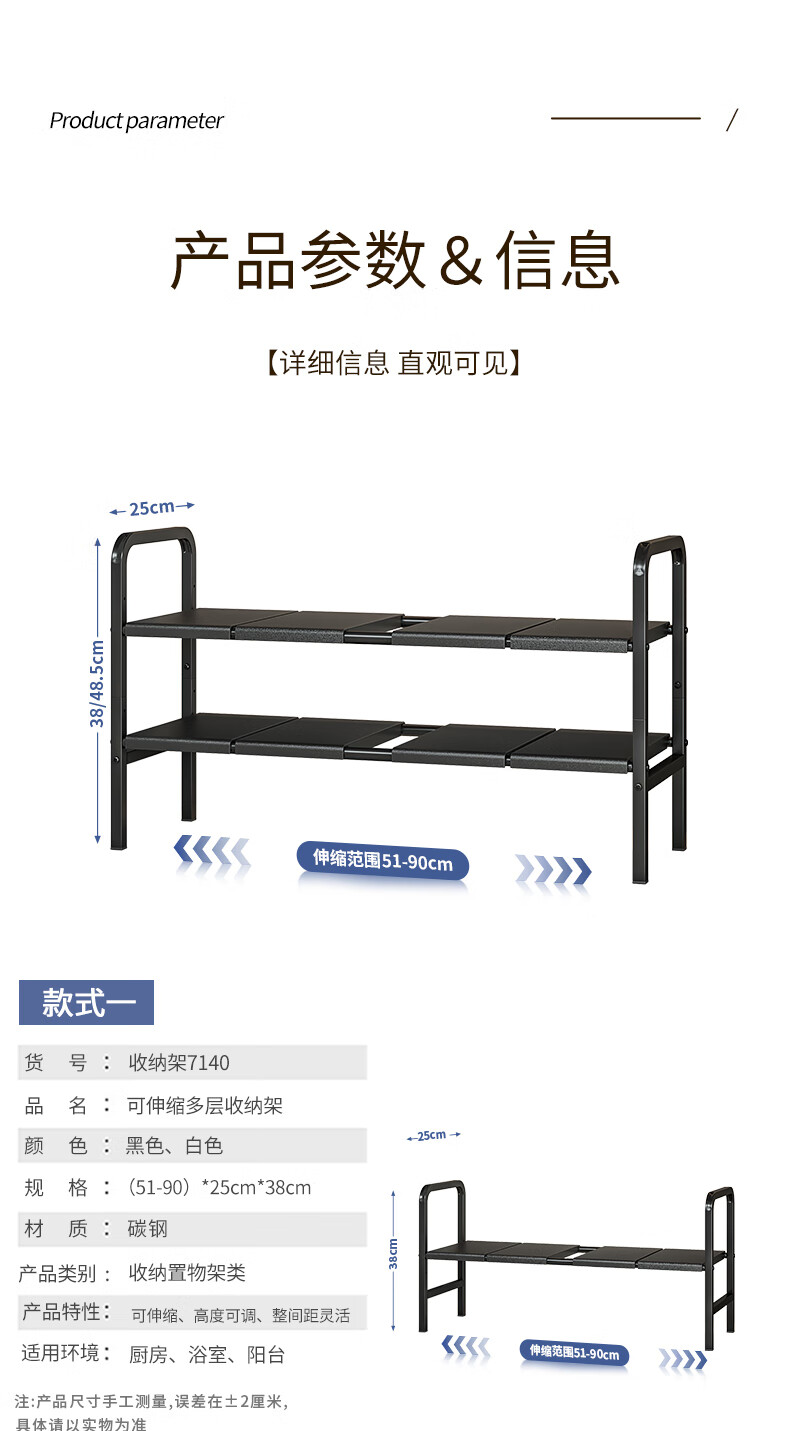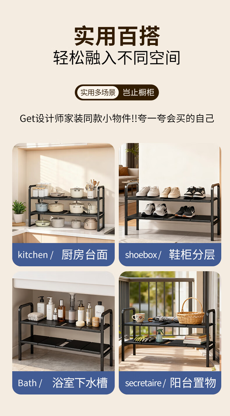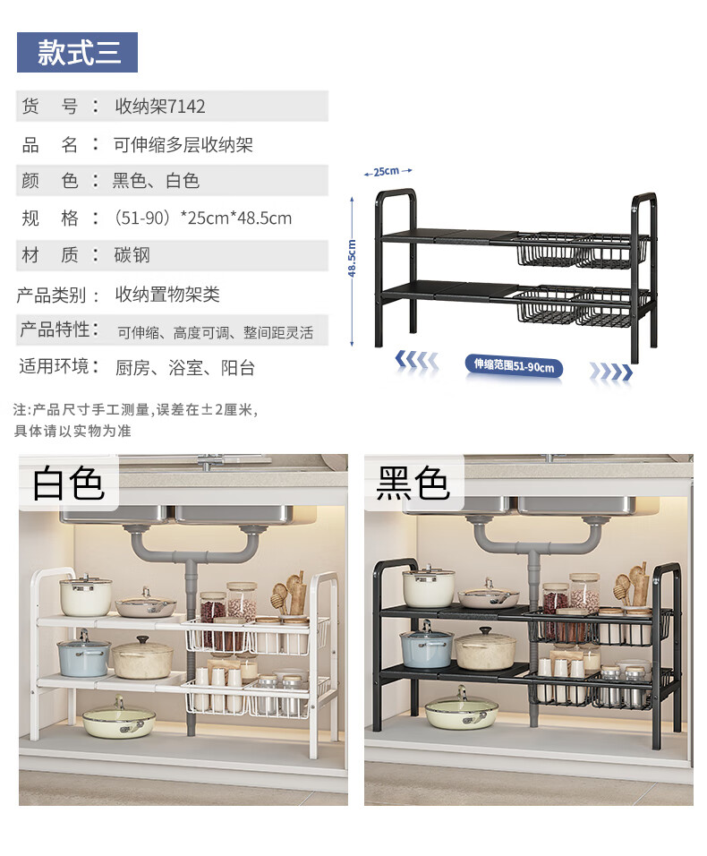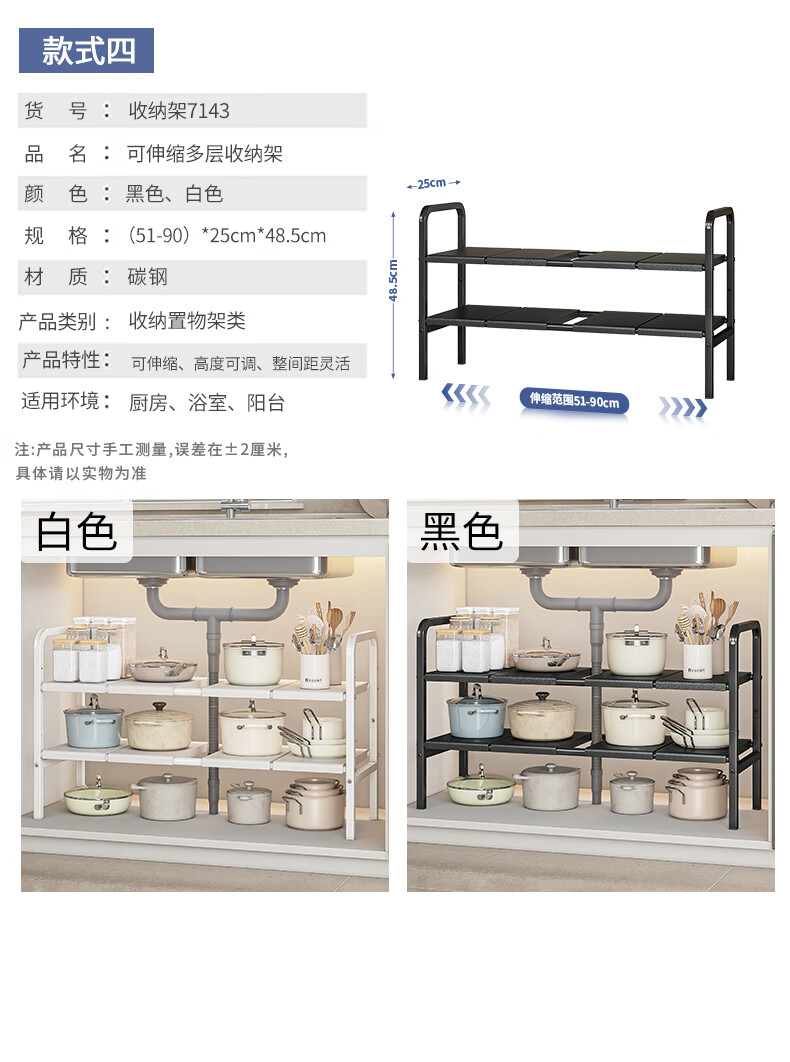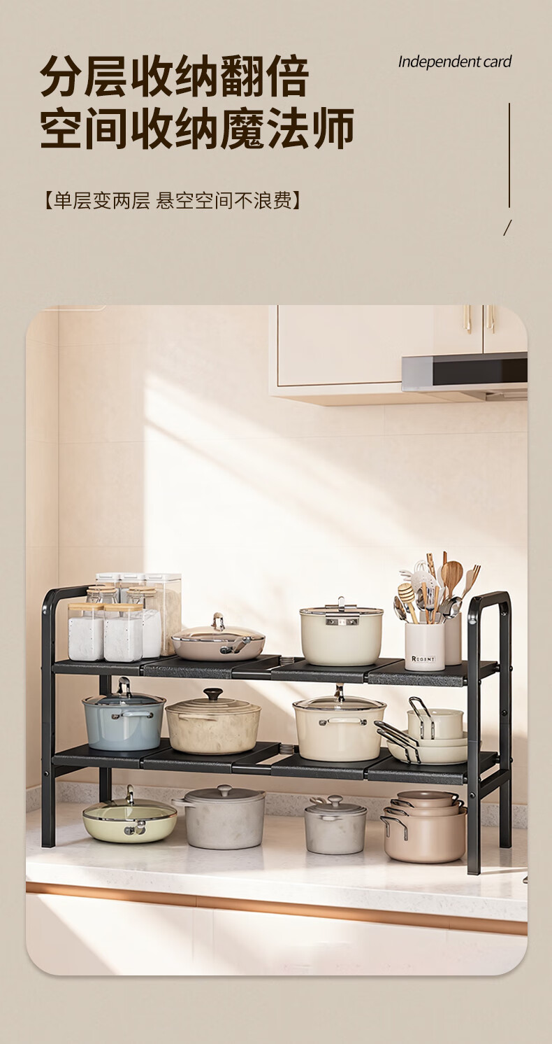 WOJIA厨房下水槽多功能置物架橱柜柜内可伸缩分层架子柜子多层锅具收纳