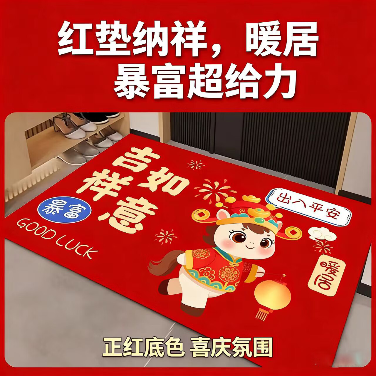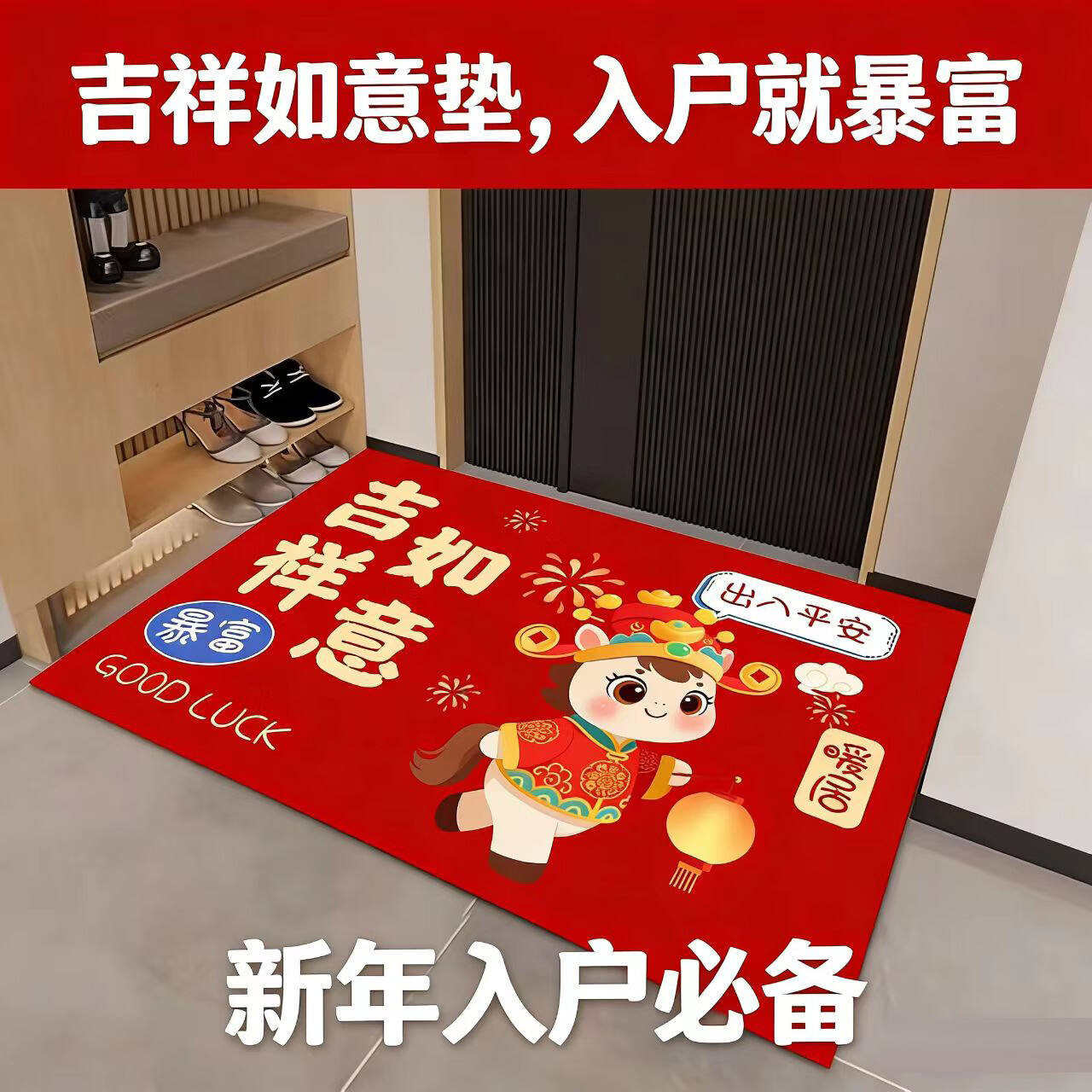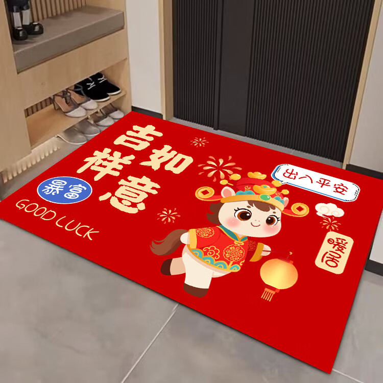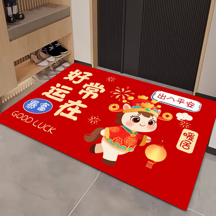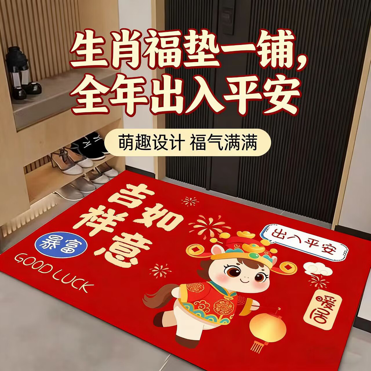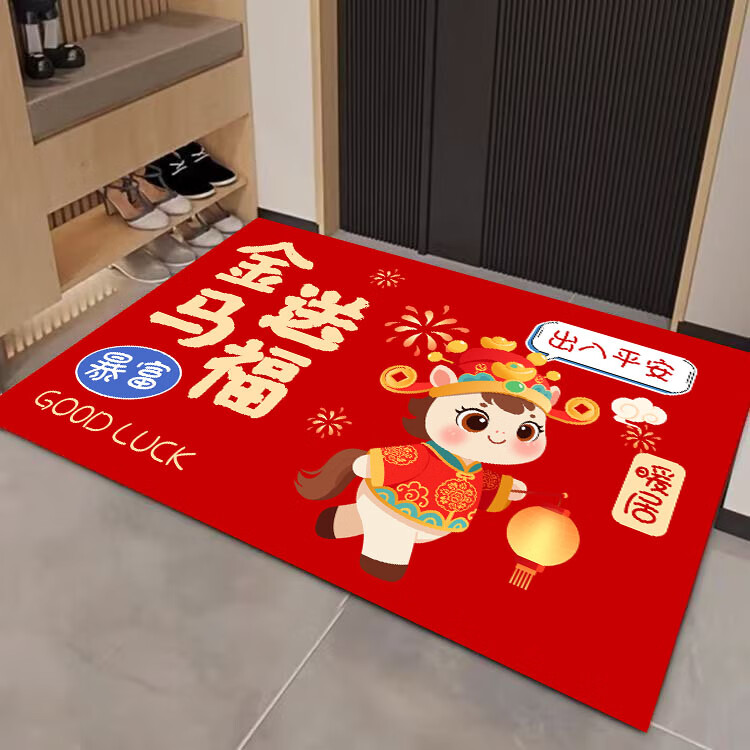 KAYE迎新年马年地垫入户门垫门口进门喜庆红地垫家用过年吸水防滑垫子 SJR-平安喜乐 50x80 cm(卧室专用)