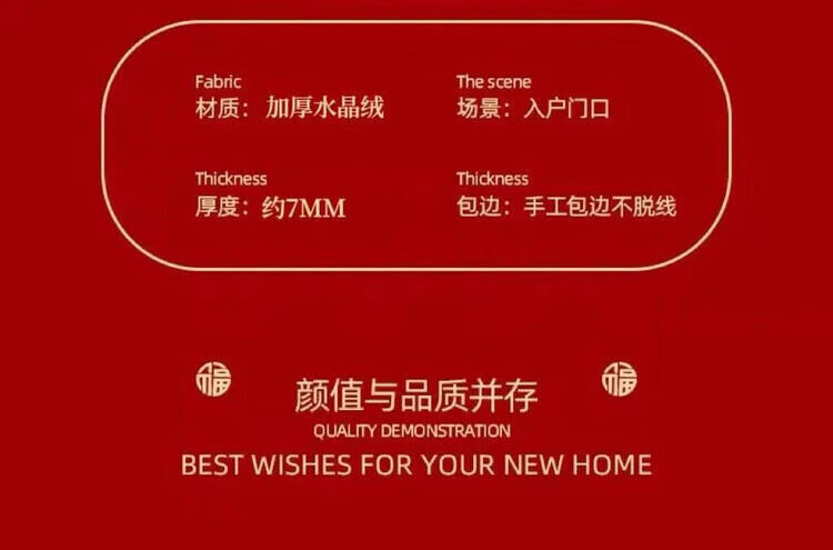 红色新年入户门垫喜庆纳福门垫吸水蹭土垫浴室厨房水晶绒地毯地垫 水晶绒-吉祥如意 40*60+50*80cm两件套