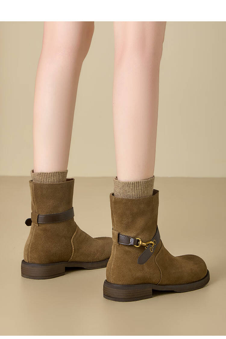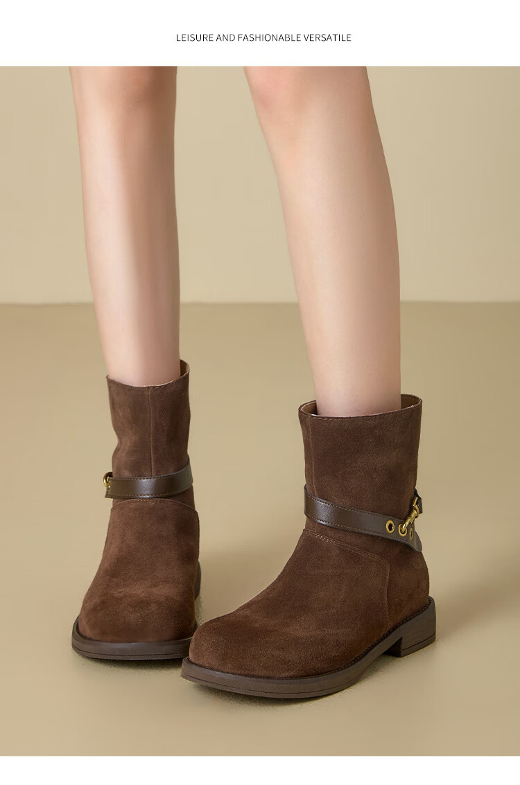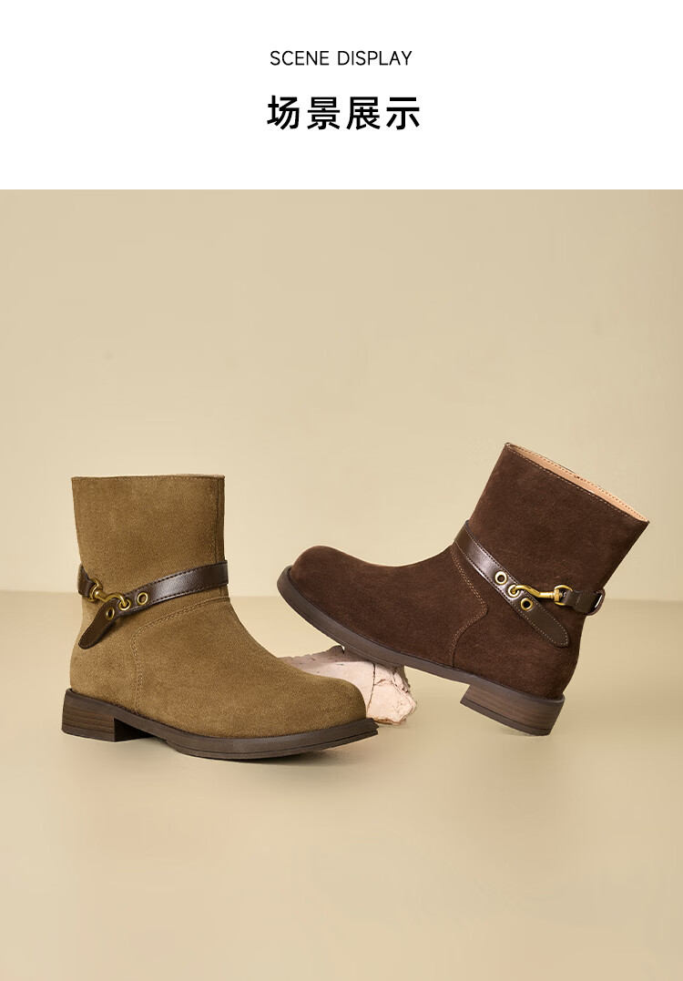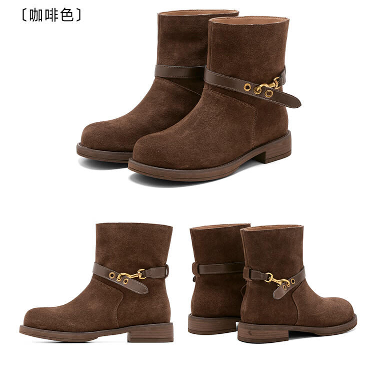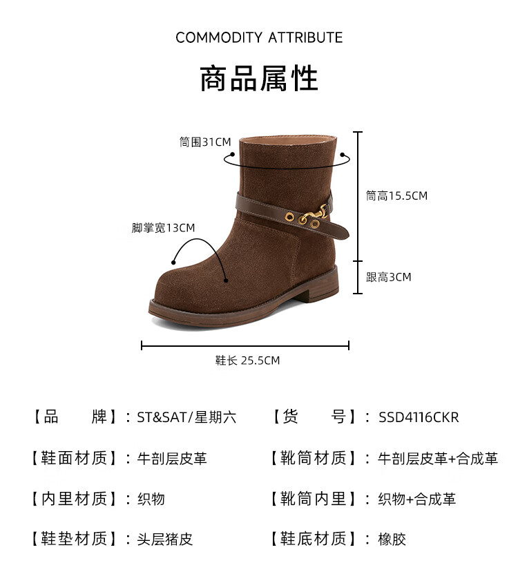 星期六复古风机车靴女2025新款秋冬休闲百搭舒适皮靴短靴百搭马丁靴 棕色 【复古百搭】 35 225