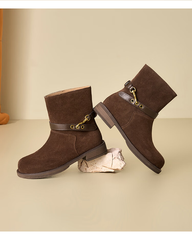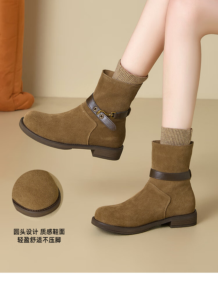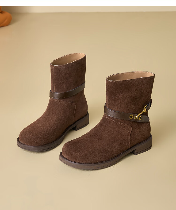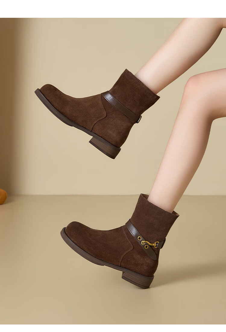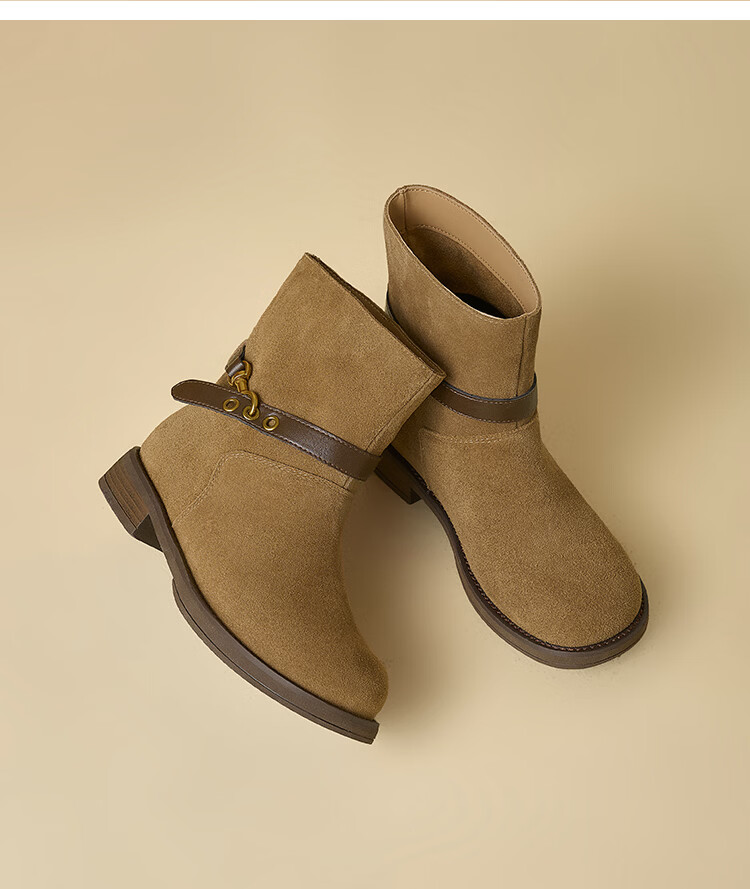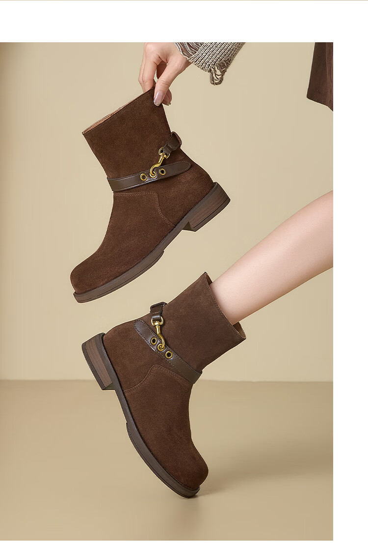 星期六复古西部靴女2025新款秋季爆款美拉德骑士靴子尖头堆堆短靴 咖色 【四季百搭】 35