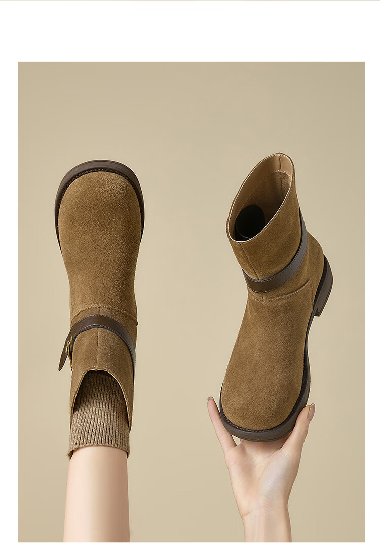 星期六美拉德短靴女2025新款废土风粗跟堆堆靴秋季复古西部牛仔靴 咖啡色 【复古百搭】 35