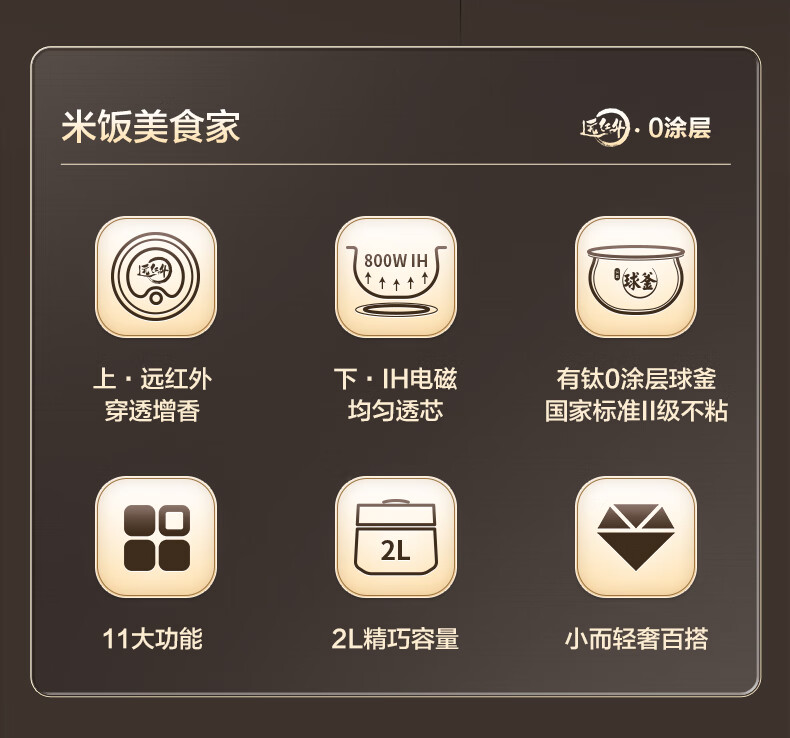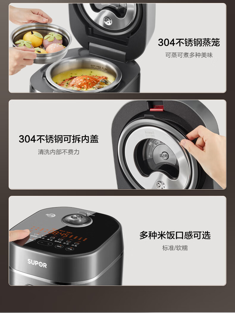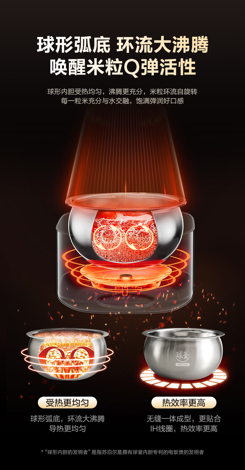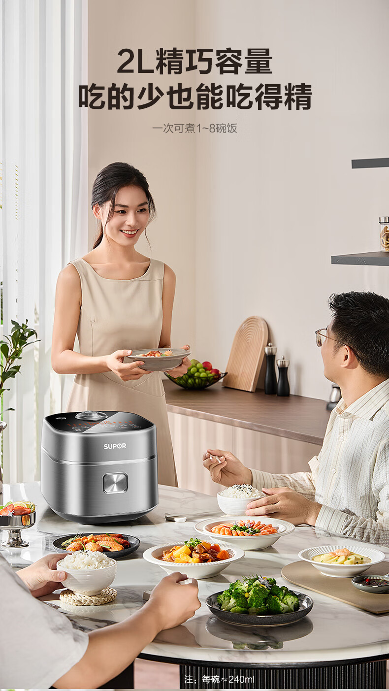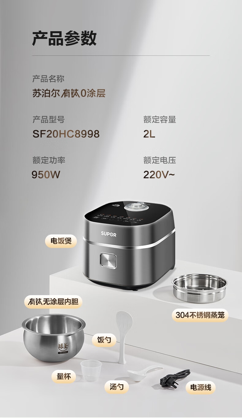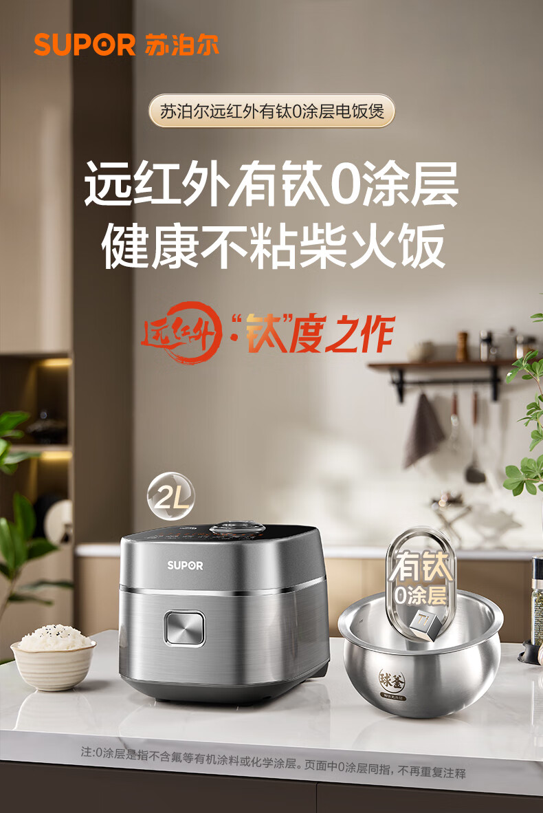 苏泊尔(SUPOR)小电饭煲1-2人用2升有钛0涂层远红外IH球釜柴火饭家用蒸饭煮粥锅不粘锅不锈钢迷你电饭锅20HC8998