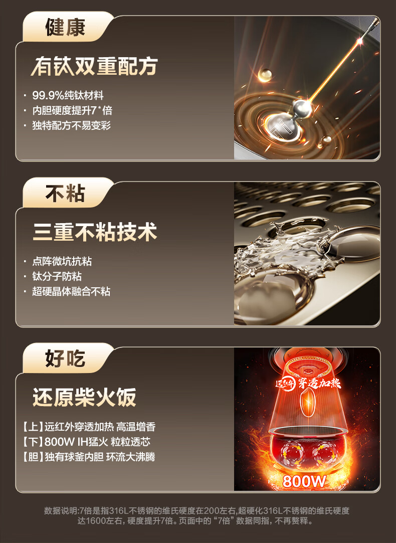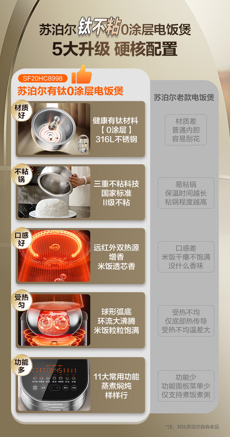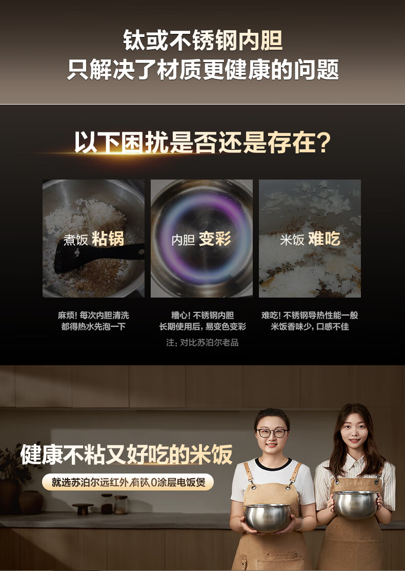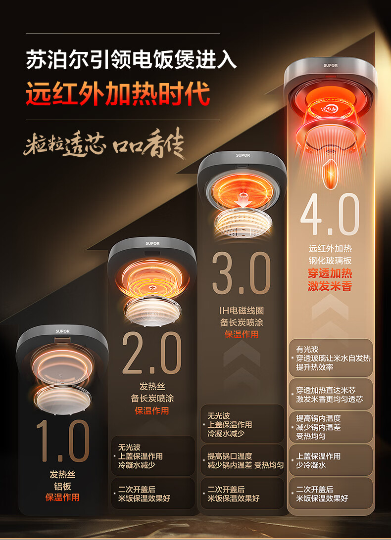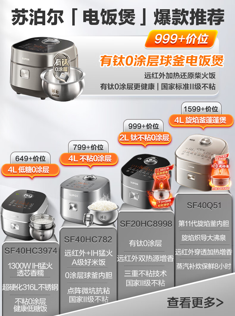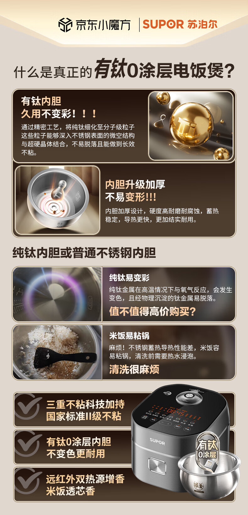 苏泊尔(SUPOR)小电饭煲1-2人用2升有钛0涂层远红外IH球釜柴火饭家用蒸饭煮粥锅不粘锅不锈钢迷你电饭锅20HC8998