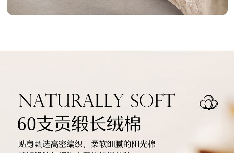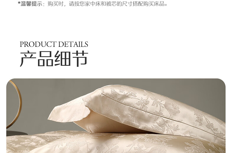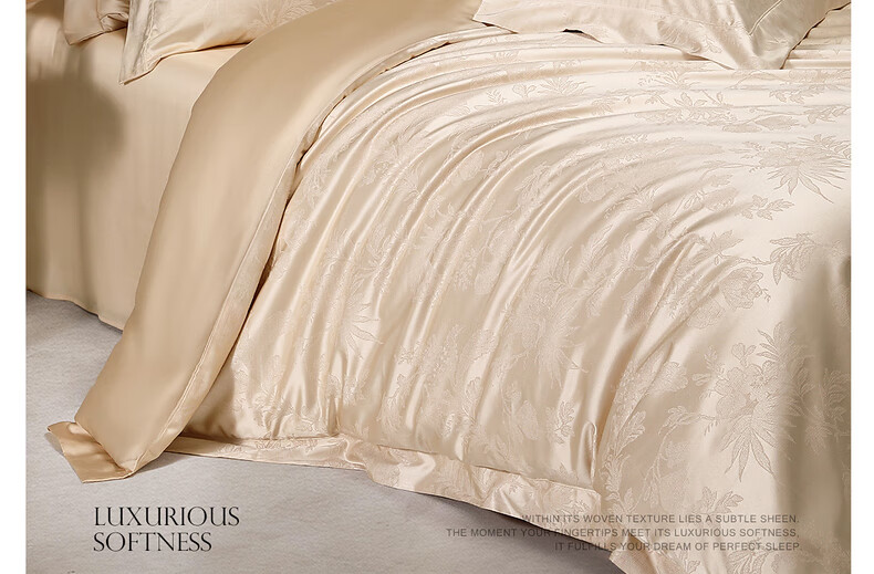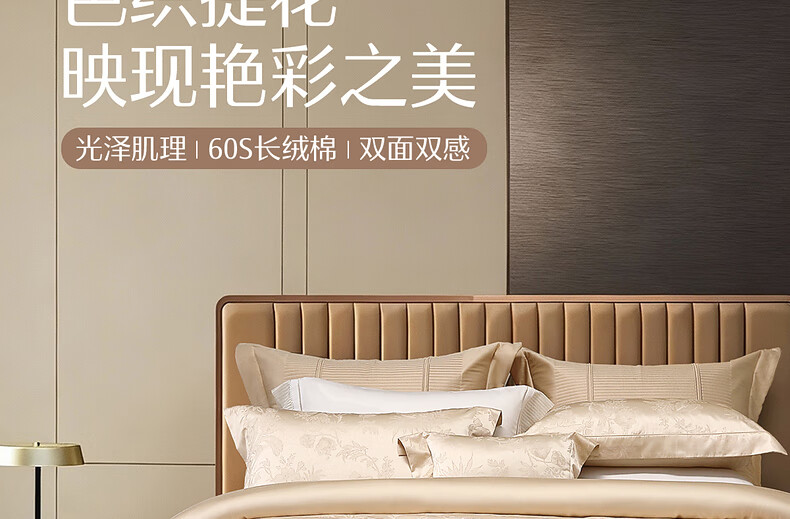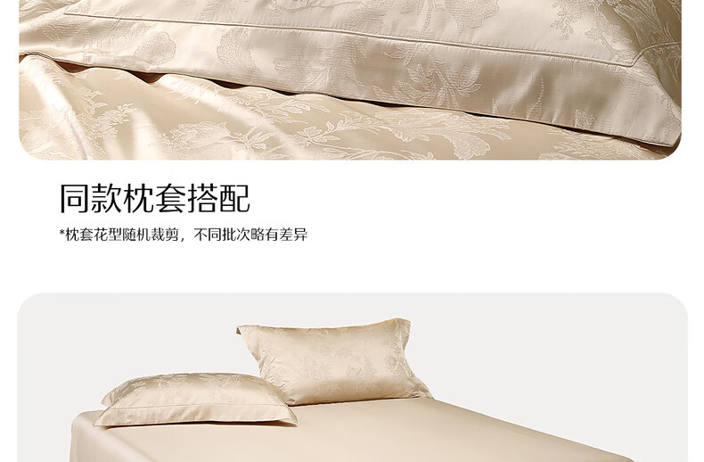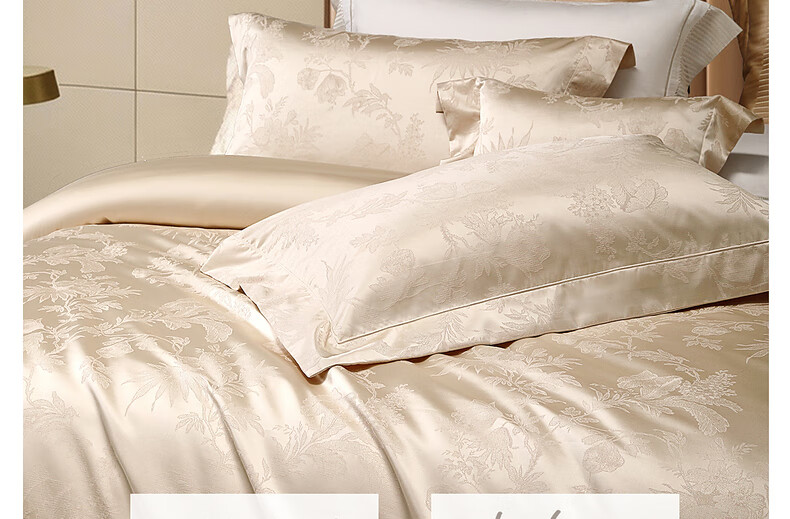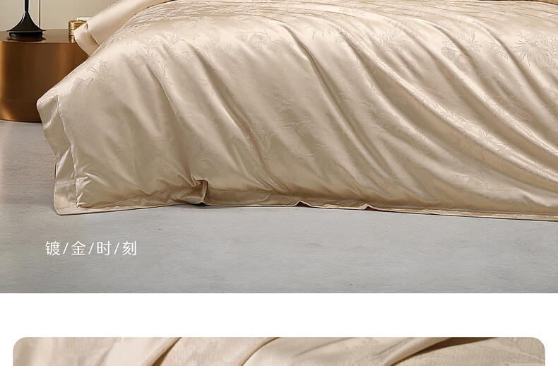 水星家纺四件套60支长绒棉纯棉100%床上床单被套色织提花床上用品轻奢高级双人1.8m床奢雅金