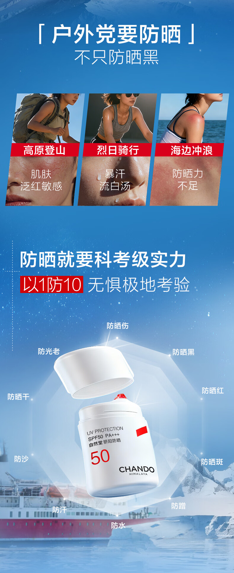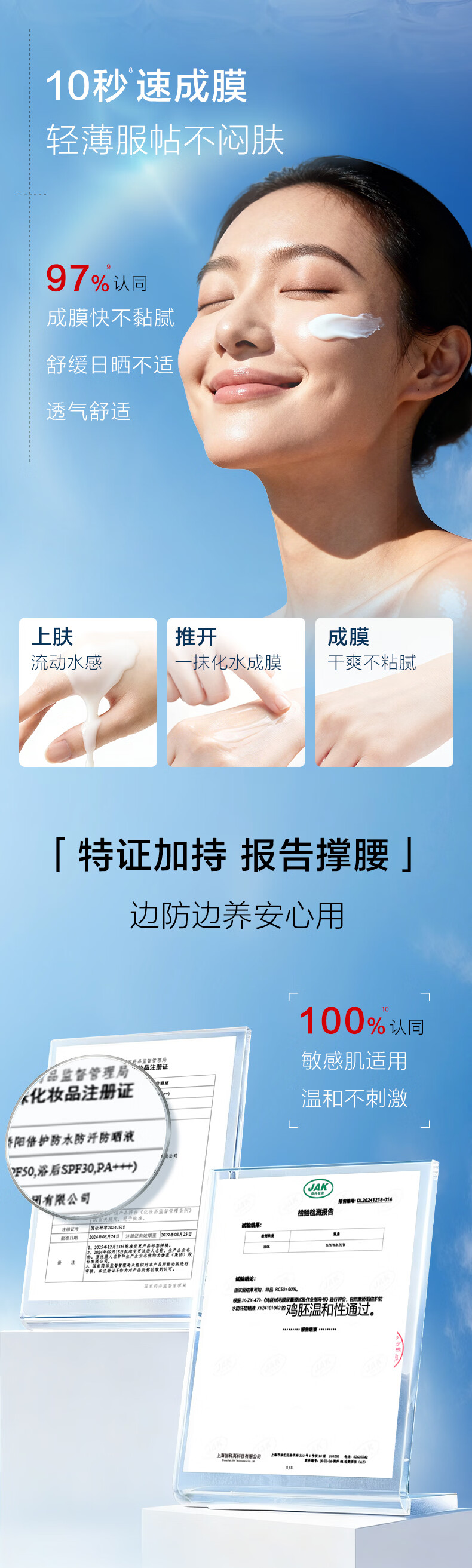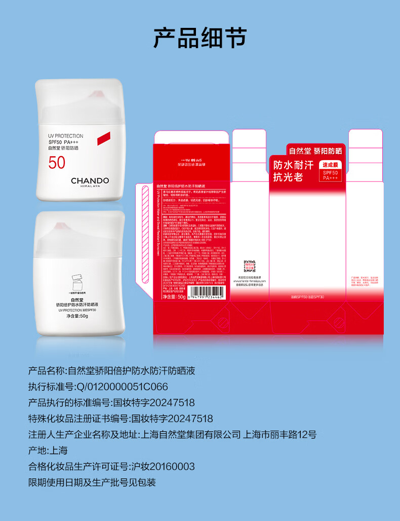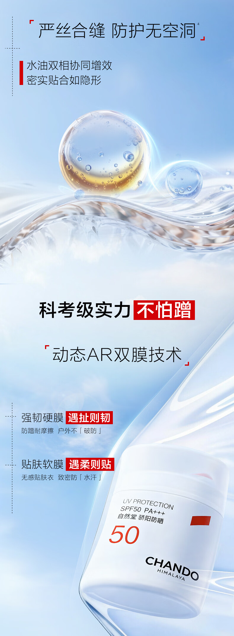 自然堂【常华森同款】骄阳倍护防水防汗防晒液SPF50 PA+++生日礼物