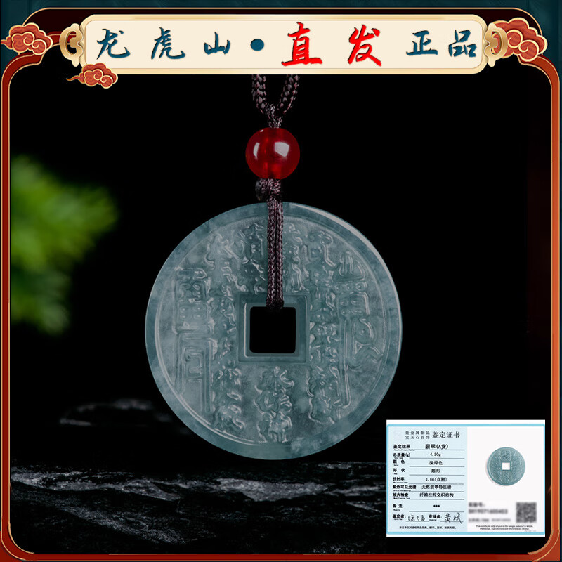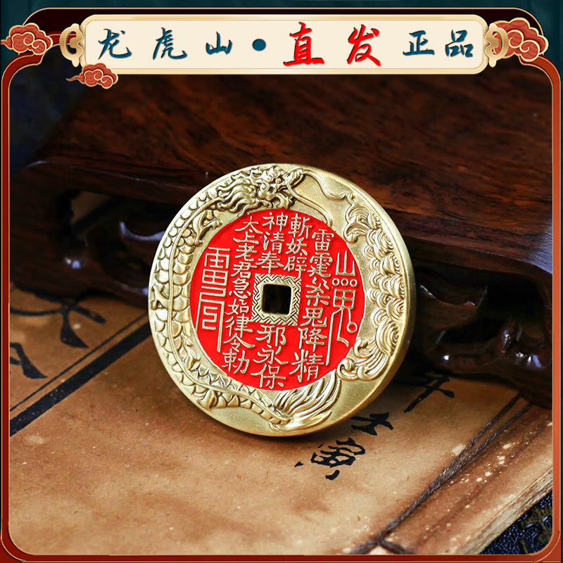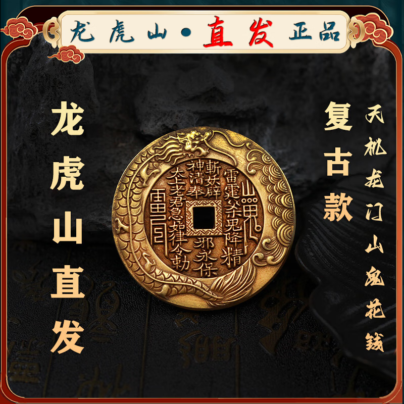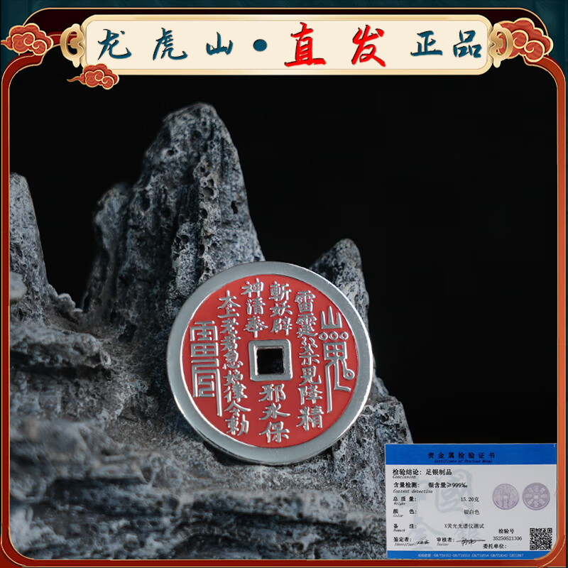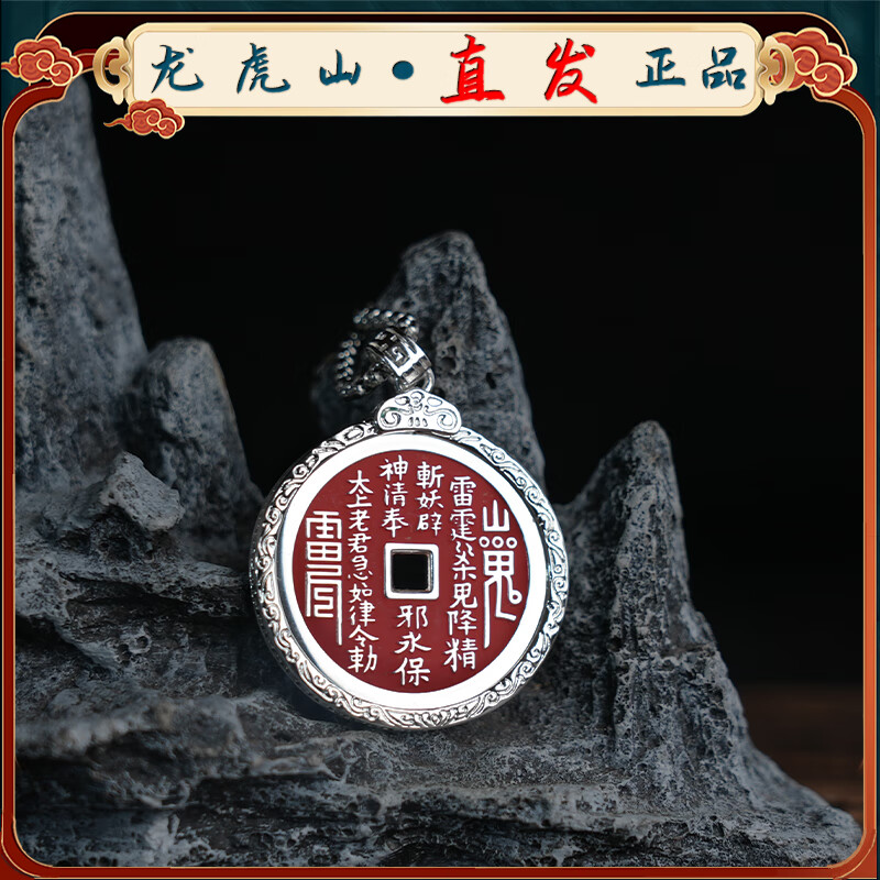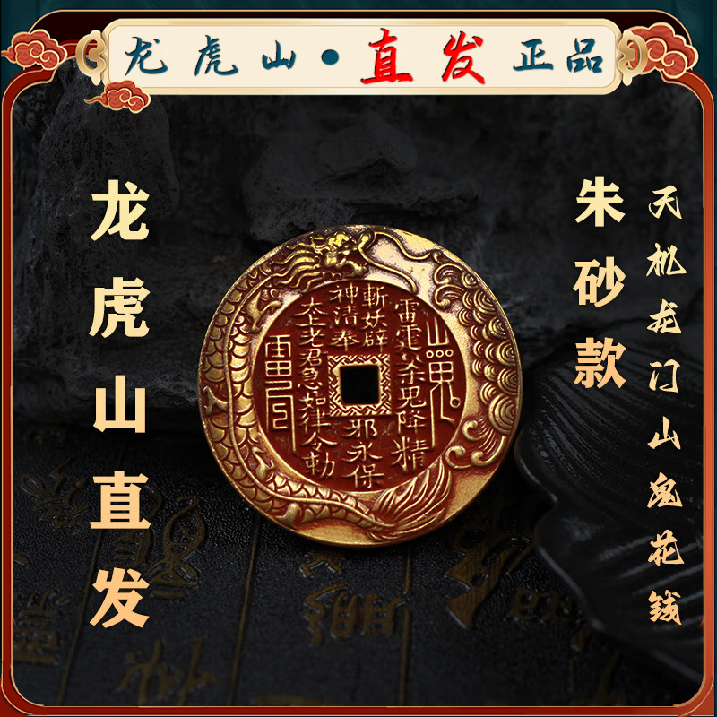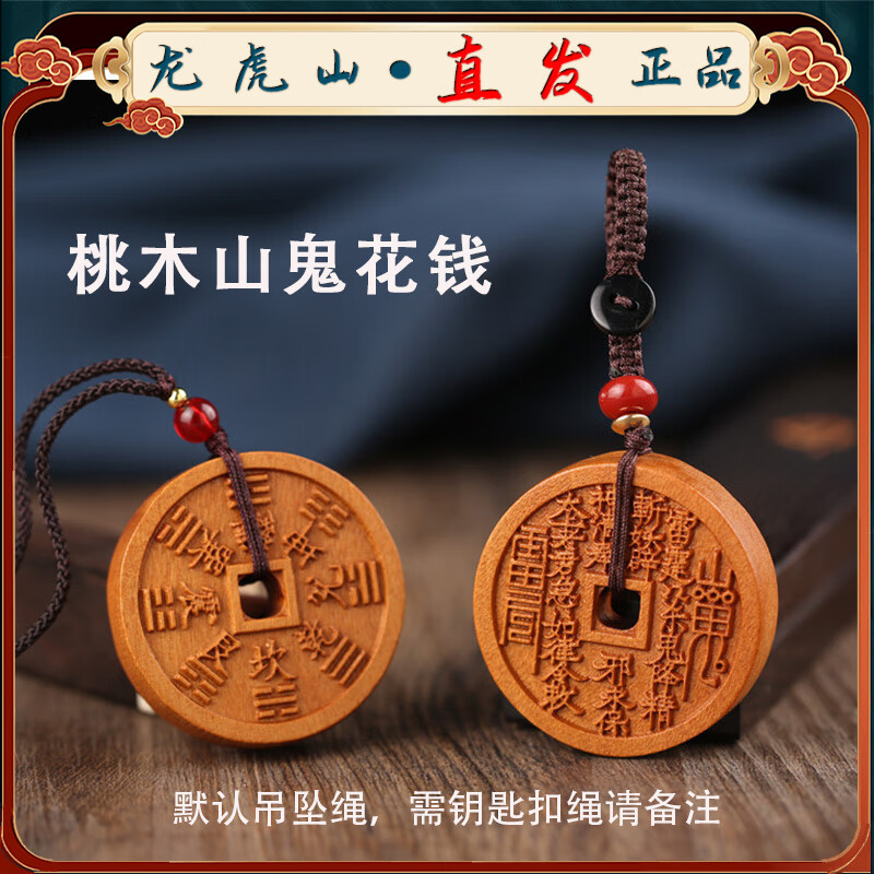 【龙虎山直发】山鬼花钱吊坠道家真品古钱币项链朱砂八卦铜钱饰品 手工填朱砂山鬼花钱3.0cm 配绳子 手工绑好 锦囊包好寄出